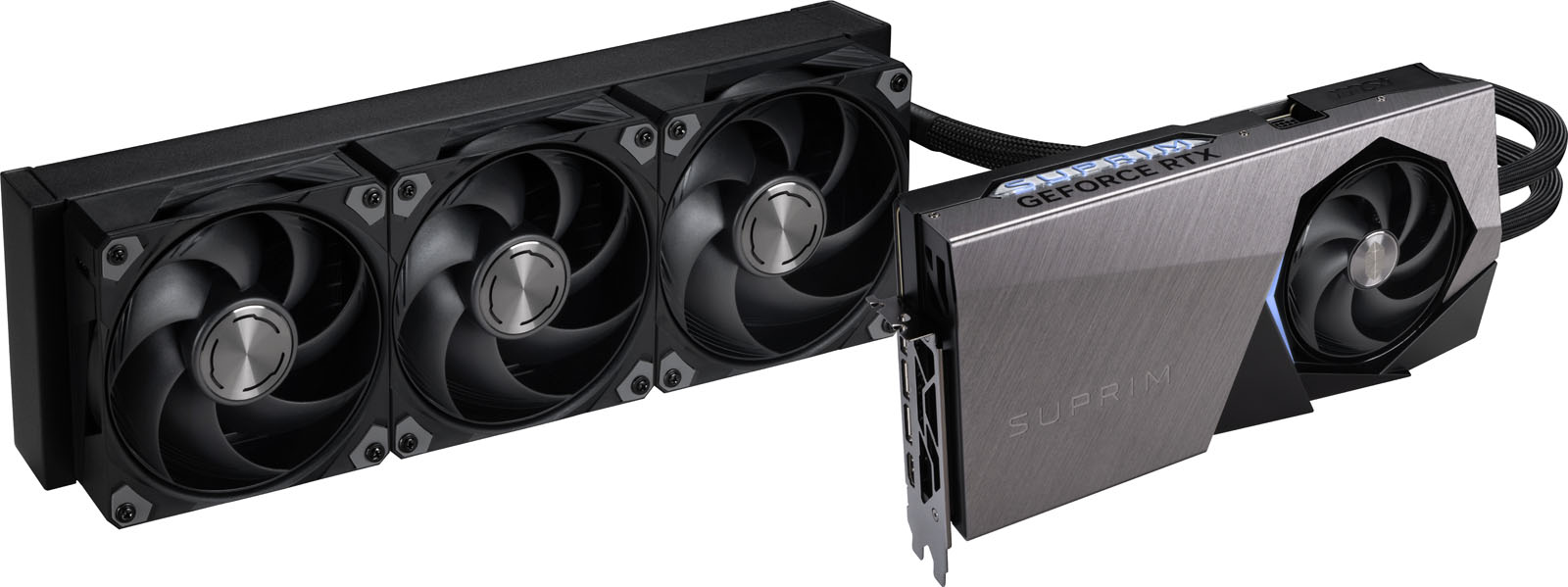 • Superior Hybrid Cooling System SUPRIM LIQUID's innovative Hybrid design uses both air cooling with STORMFORCE Fan and liquid cooling to effectively manage heat from the GPU and VRAM.
