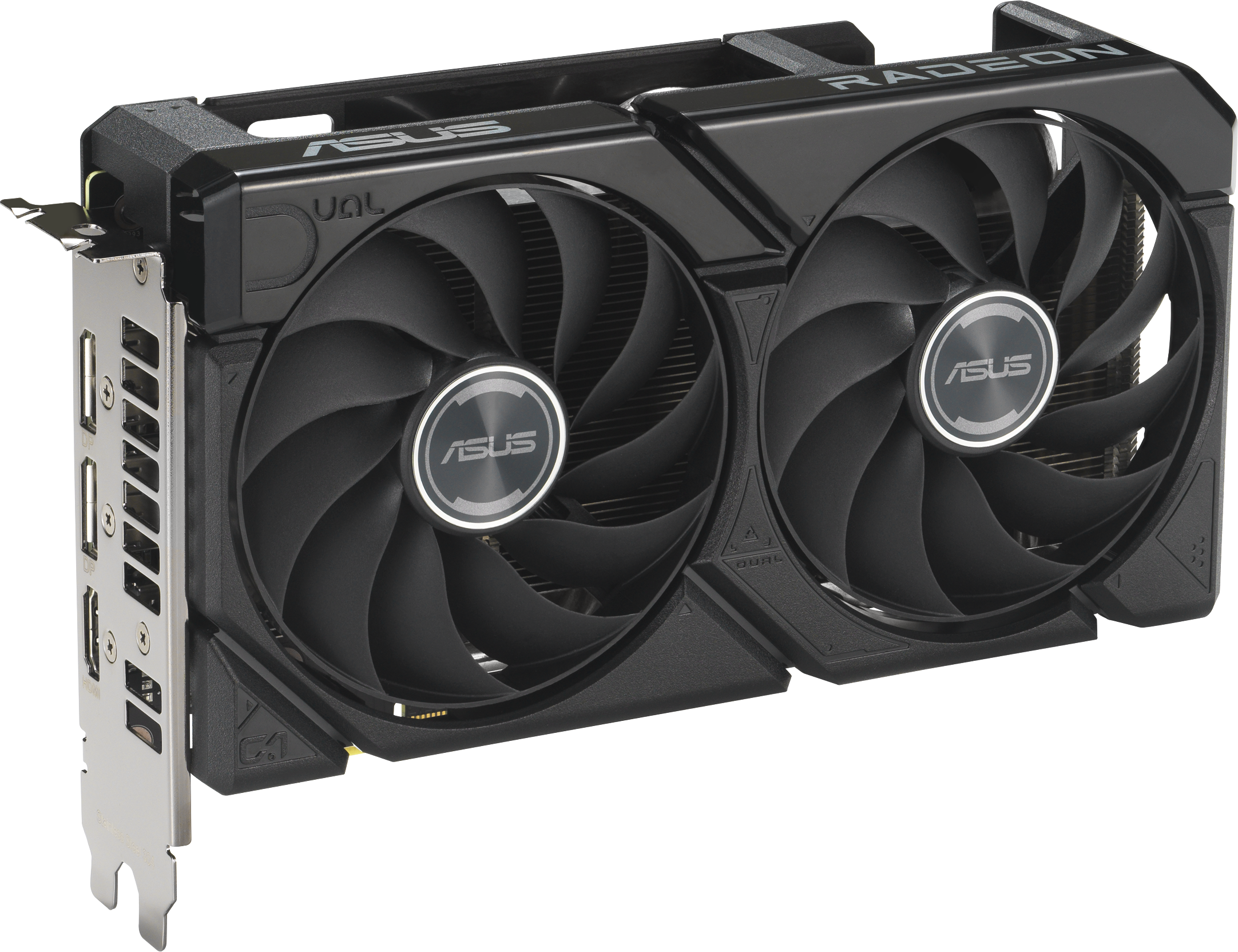 Dual Radeon™ RX 9060 XT combines powerful thermal performance with broad compatibility. Advanced cooling solutions from flagship graphics cards — including two Axial-tech fans for optimizing airflow to the heatsink. Designed in a compact 2.5-slot form factor, delivering more power in less space. These enhancements make ASUS Dual the perfect choice for gamers who want heavyweight graphics performance in a compact build.