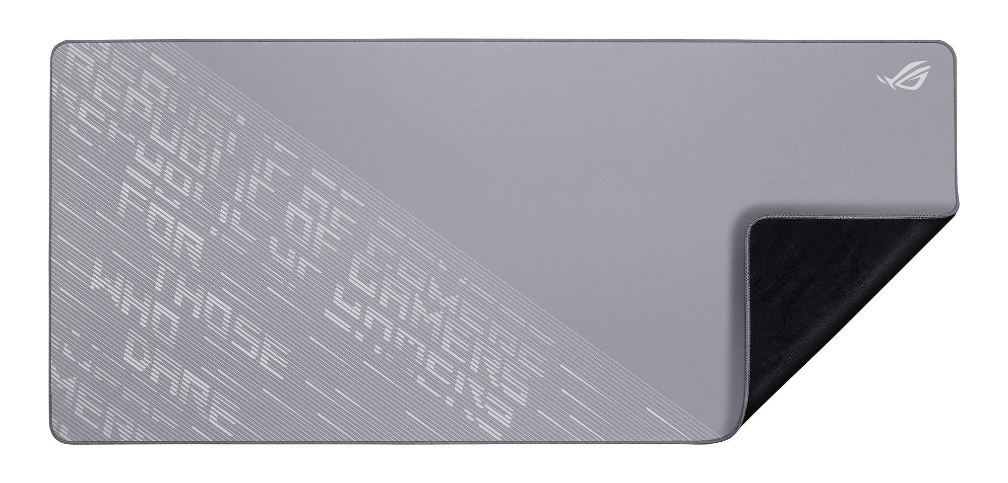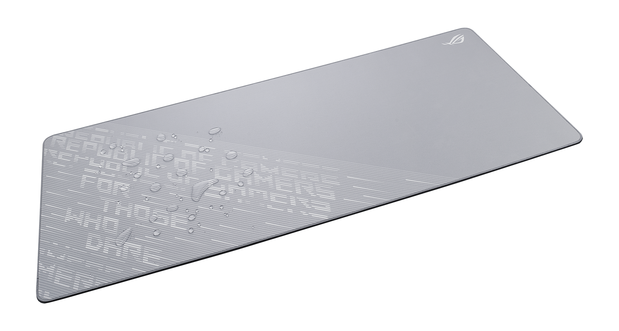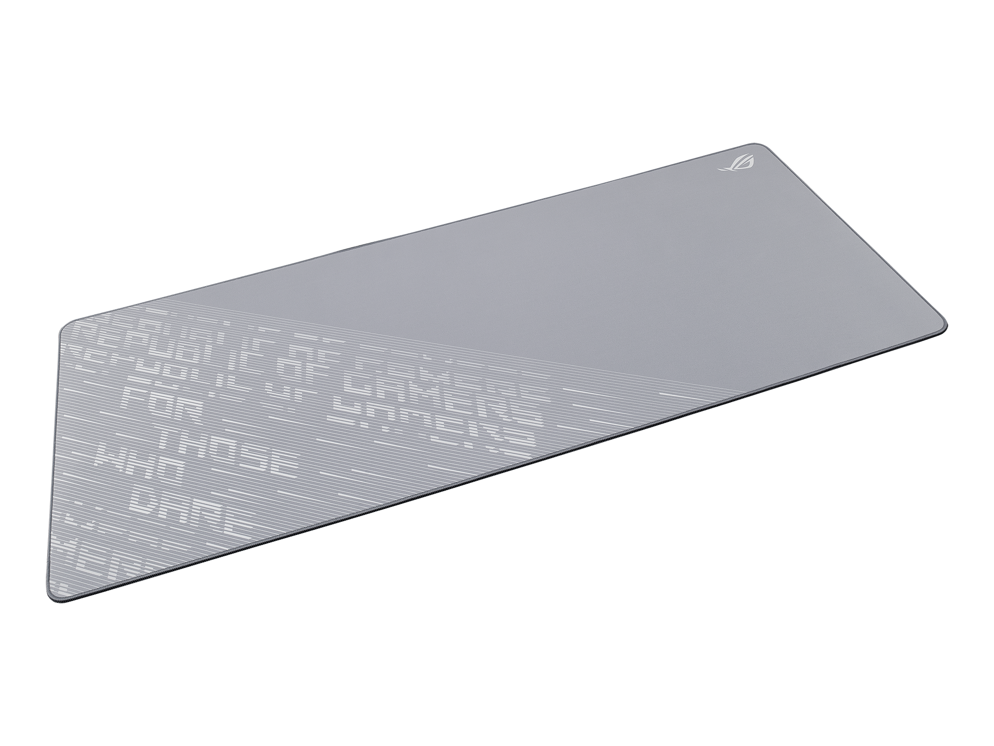 The ROG Scabbard II Arctic Gray XXL is a large gaming mouse pad with a water-, oil-and dust-repellent surface and anti-fray, flat-stitched edges, plus a nonslip rubber base