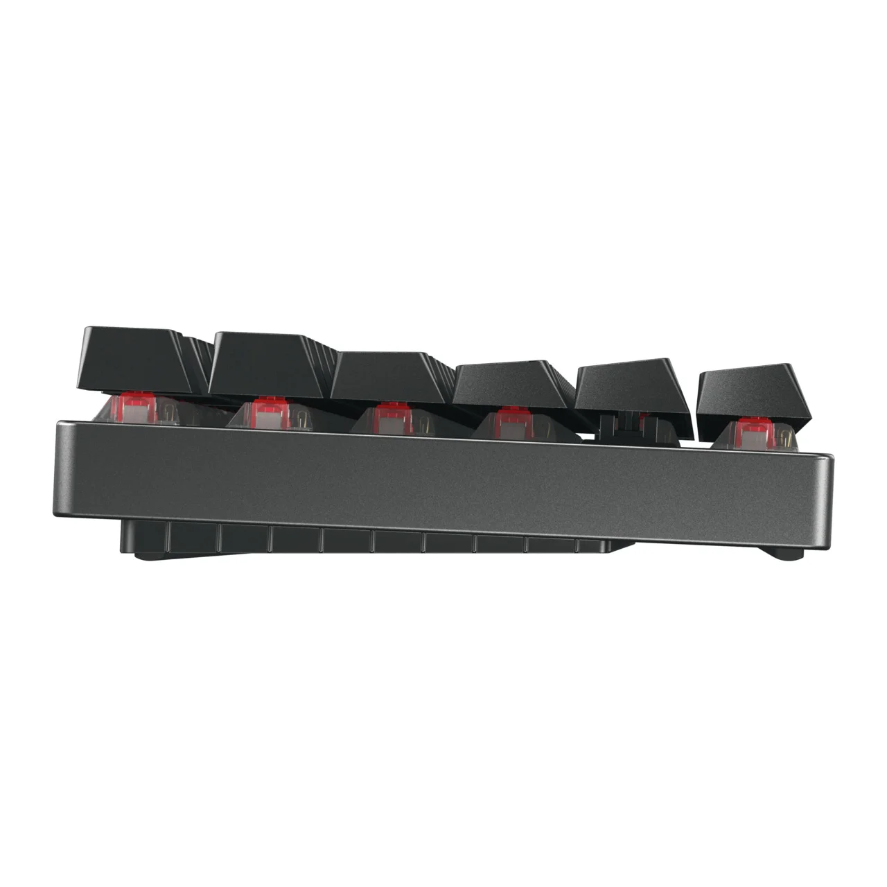 The CHERRY MX 8.2 TKL Wireless has a solid aluminum housing, which makes it high-quality and stable despite its compact dimensions. Since the wireless mechanical keyboard in TKL format takes up little space, your desktop will immediately look neater. The lack of a numeric keypad also provides an ergonomic advantage: Your mouse arm is closer to the keyboard, which automatically optimizes your shoulder posture and reduces tension. The height can be adjusted with the fold-out feet.