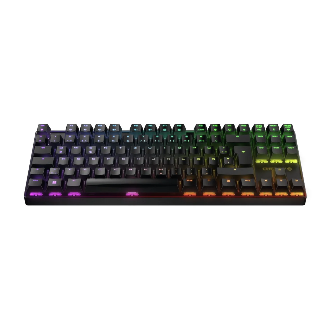 CHERRY MX 8.2 TKL Wireless – the elegant gaming pro. Wireless and incredibly fast with a latency of less than 1 ms in gaming mode. The classy Tenkeyless design without numeric keypad in a solid aluminum housing with vibrant RGB lighting is the eye-catcher on every desktop. In addition to the classic gaming features, the tried-and-tested CHERRY MX switches and abrasion-resistant keycaps guarantee you a lasting gaming experience.