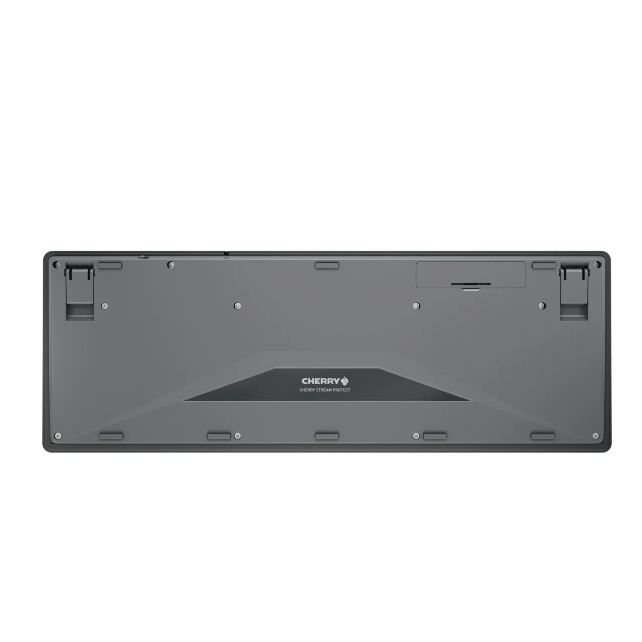 Together, the CHERRY STREAM KEYBOARD WIRELESS and the CHERRY STREAM PROTECT MEMBRANE become the CHERRY STREAM PROTECT KEYBOARD WIRELESS. This means the keyboard offers the ability to be completely wiped clean or even disinfected, but remains very comfortable to type on. With frequent and changing use, keyboards can be a reservoir for dirt and germs. On the CHERRY STREAM PROTECT KEYBOARD, dirt and microorganisms such as bacteria and viruses can be simply wiped off the flat and completely enclosed key surface. The key membrane can be taken off the keyboard for washing and changing. The STREAM PROTECT MEMBRANE thus effectively protects people, the keyboard and the environment. The STREAM PROTECT KEYBOARD WIRELESS follows the design, elegance and sleekness of the CHERRY STREAM product line with the same slim design, high torsional rigidity and stability. Rubber pads and fold-out feet provide the usual firm footing. Sturdy scissor technology and the highly developed haptics of the key membrane ensure the legendary typing comfort of the CHERRY STREAM keyboards. The 2.4 GHz wireless connection with up to 10 meters range is as reliable and uncomplicated as ever. The keyboard can be plug-and-play-connected to the PC via the receiver. The wireless connection has AES-128 data encryption. A low battery is indicated by the status LEDs integrated in the keys. The STREAM PROTECT MEMBRANE provides hygienic protection wherever a CHERRY STREAM keyboard is already in use, for example in public administration, educational institutions, schools and universities or in shared office environments.