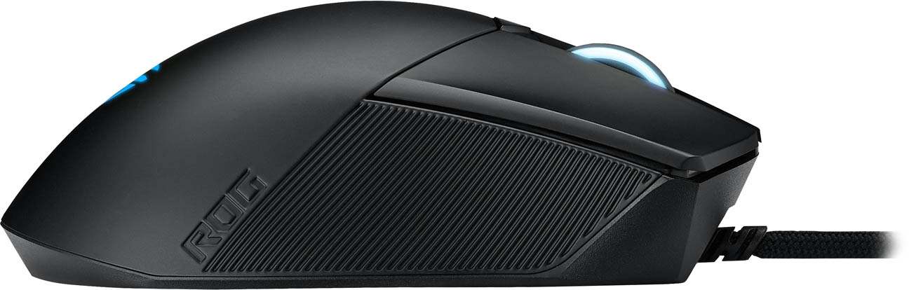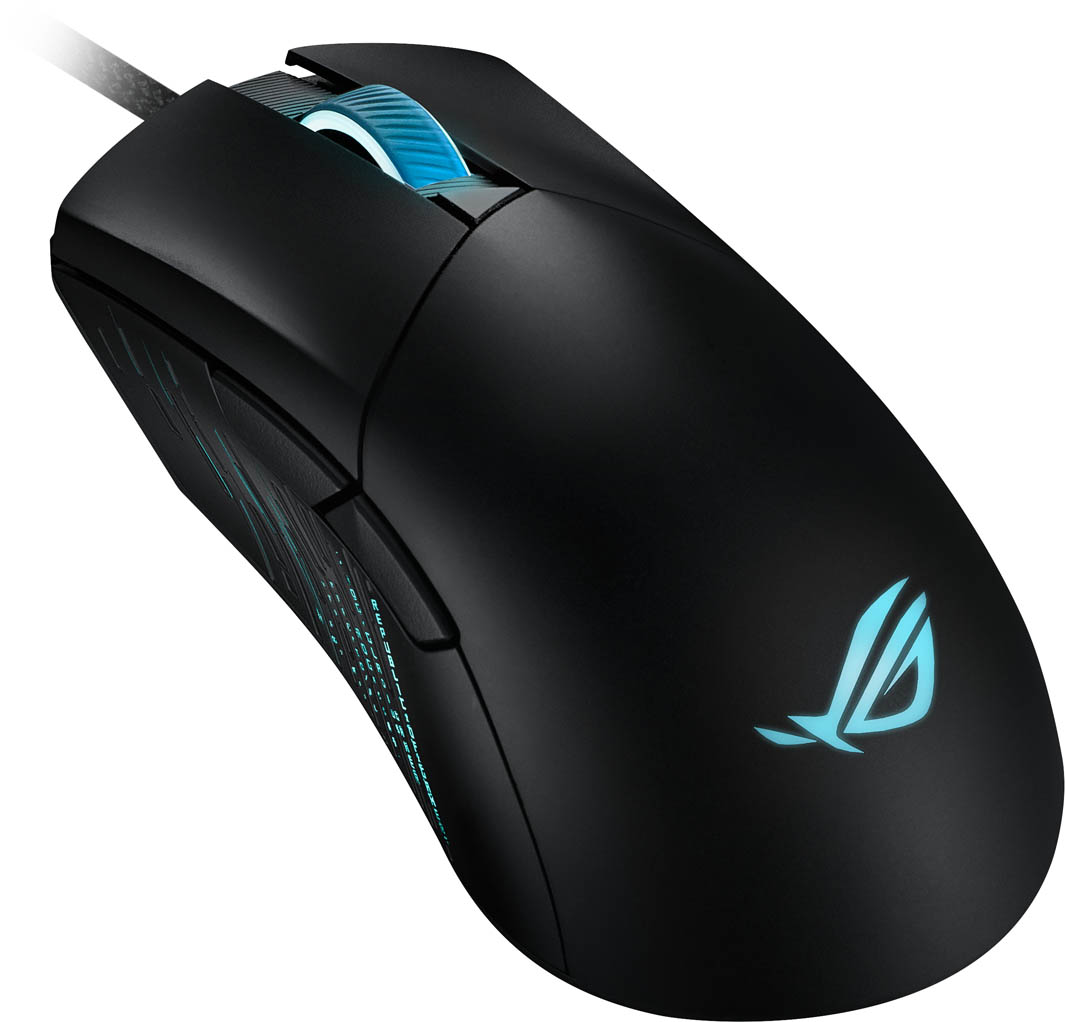 Classic asymmetrical gaming mouse with specially tuned 26,000 dpi with 1% deviation, instant button actuation, exclusive Push-Fit Switch Socket II, laser-engraved ROG aesthetic, ROG Omni Mouse Feet, ROG Paracord and Aura Sync RGB lighting