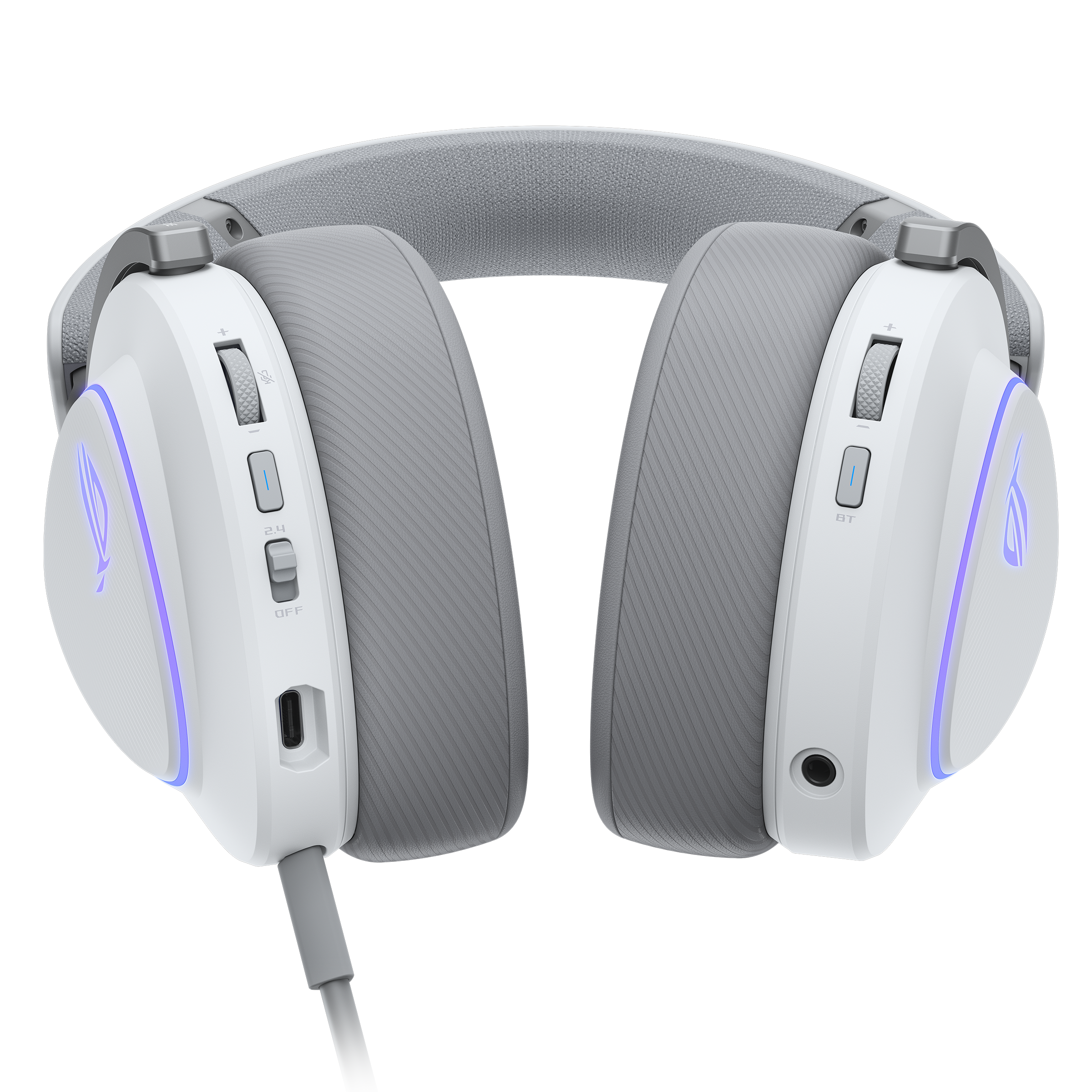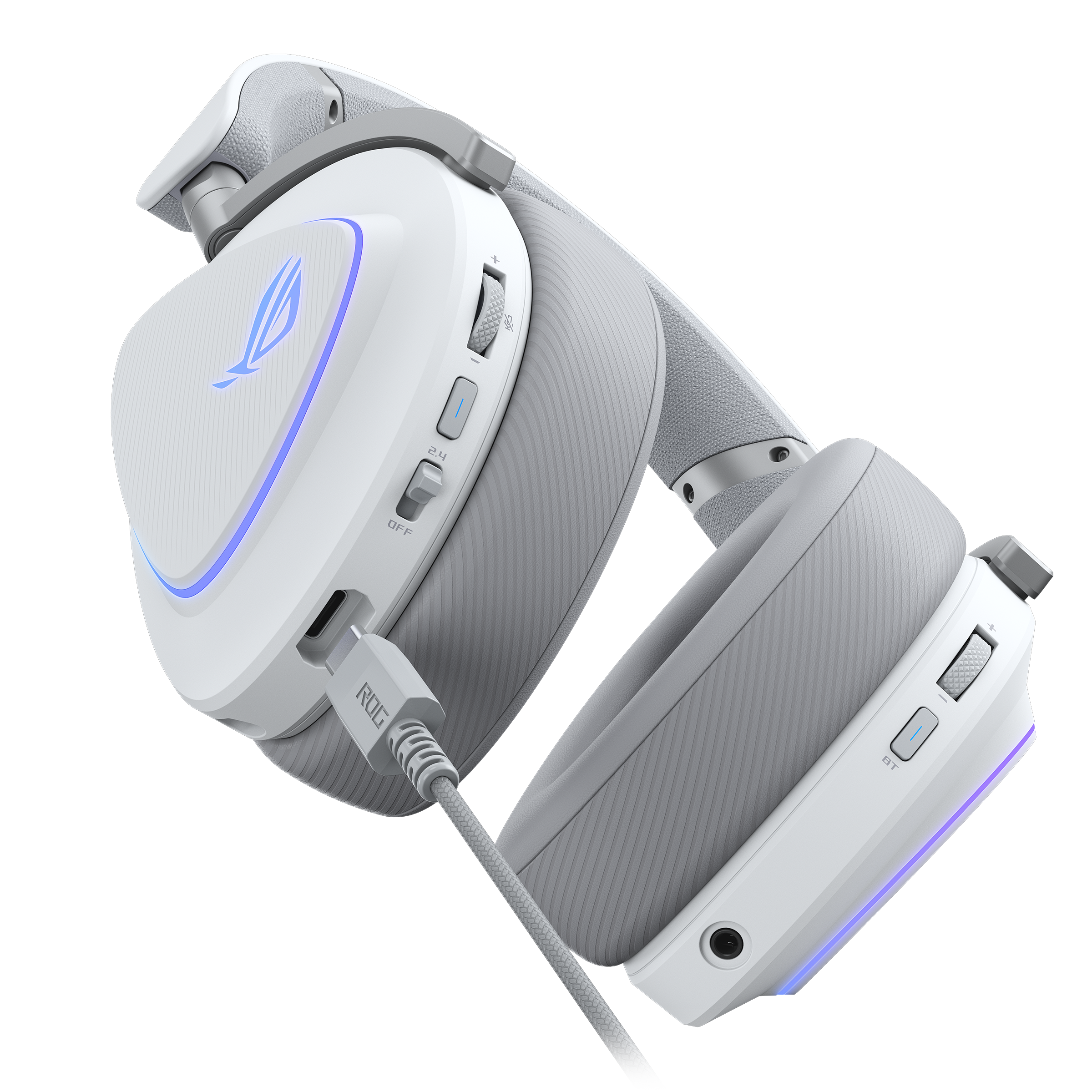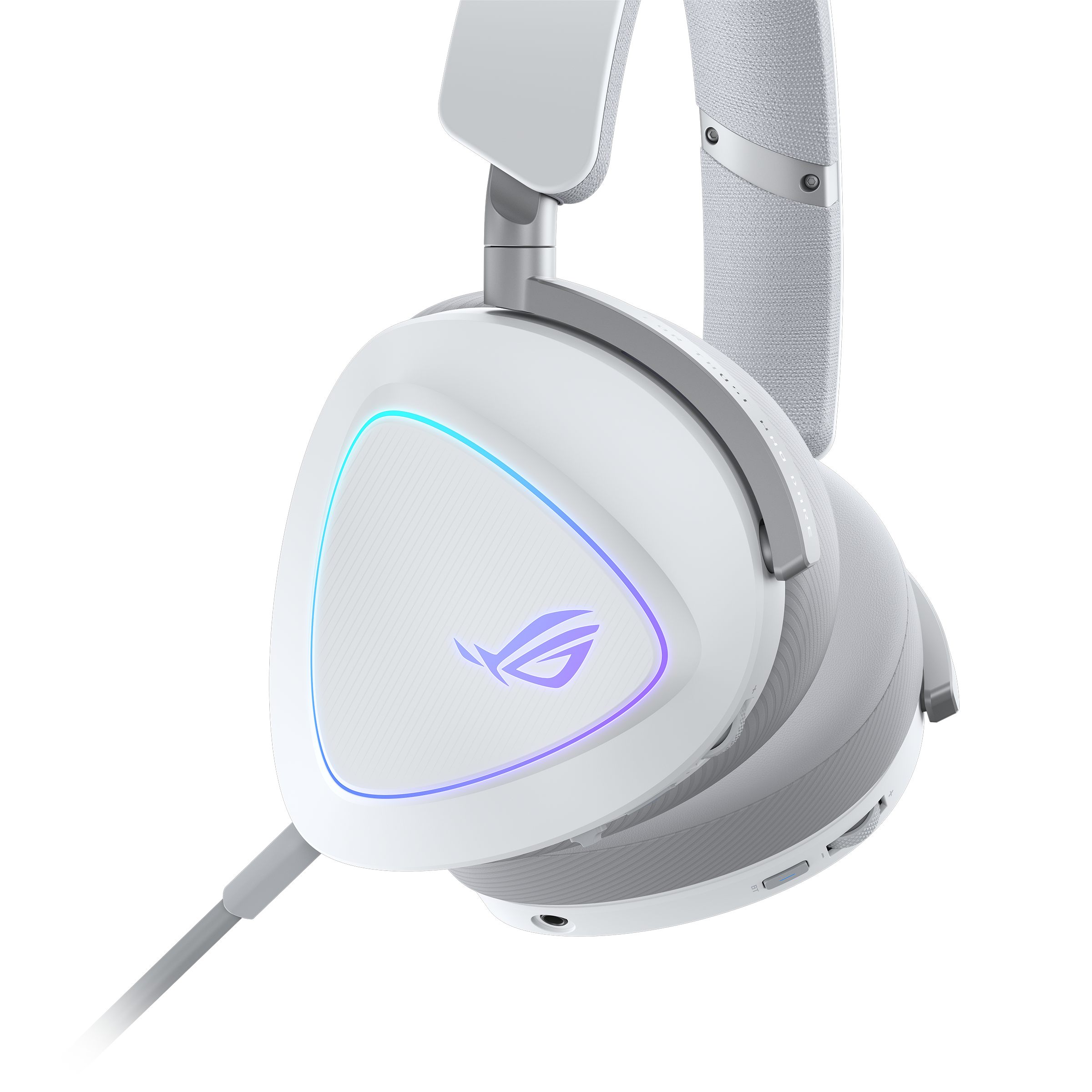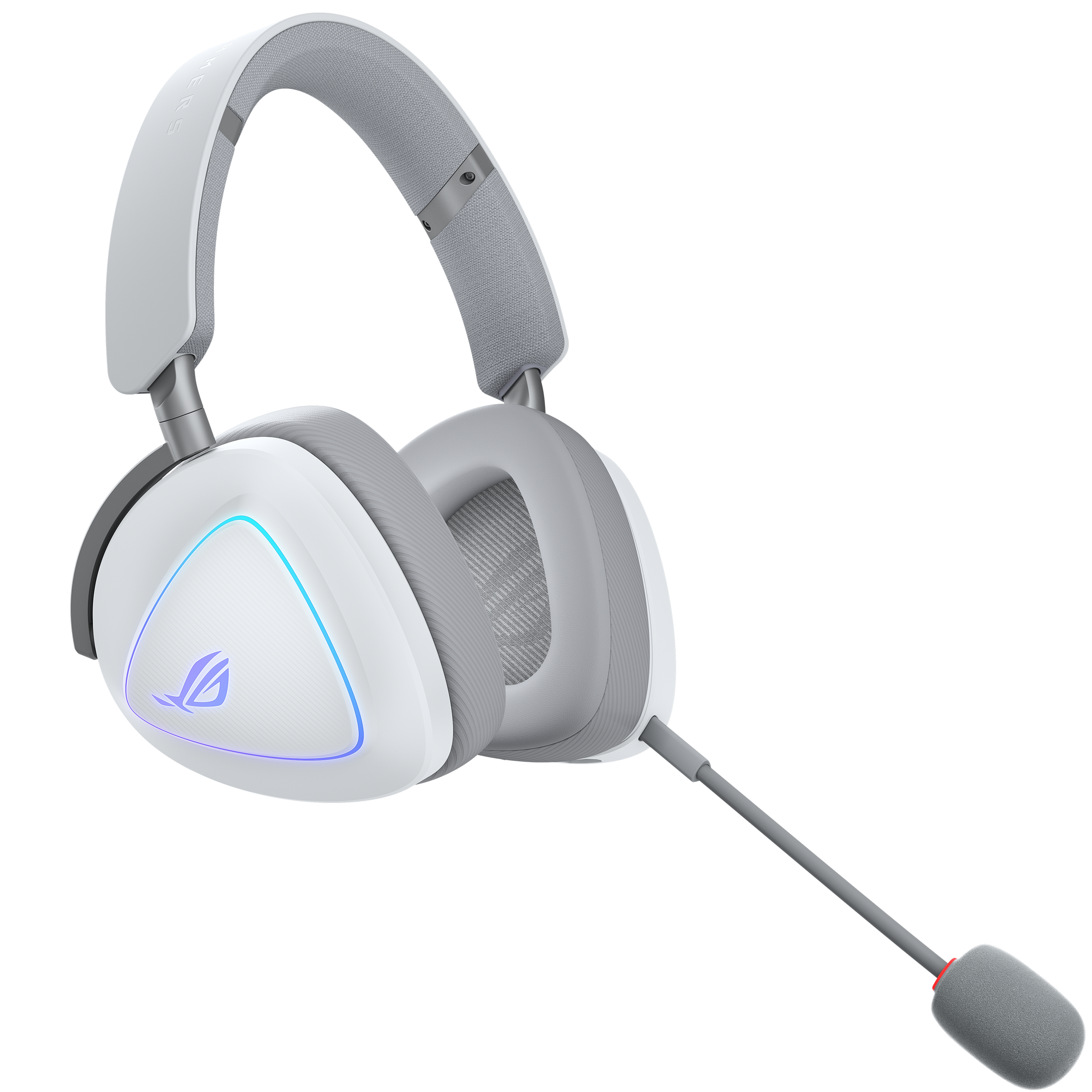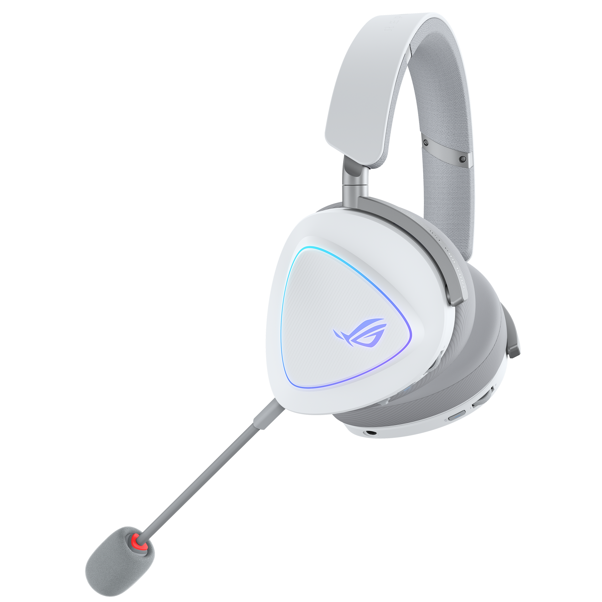 Tri-mode wireless gaming headset with ROG SpeedNova, 50 mm titanium-plated diaphragm drivers, and refined wireless sound signature, 10 mm super-wideband boom microphone, DualFlow Audio, up to 110-hour battery life, lightweight 318-g design, plus ASUS Aura Sync RGB lighting
