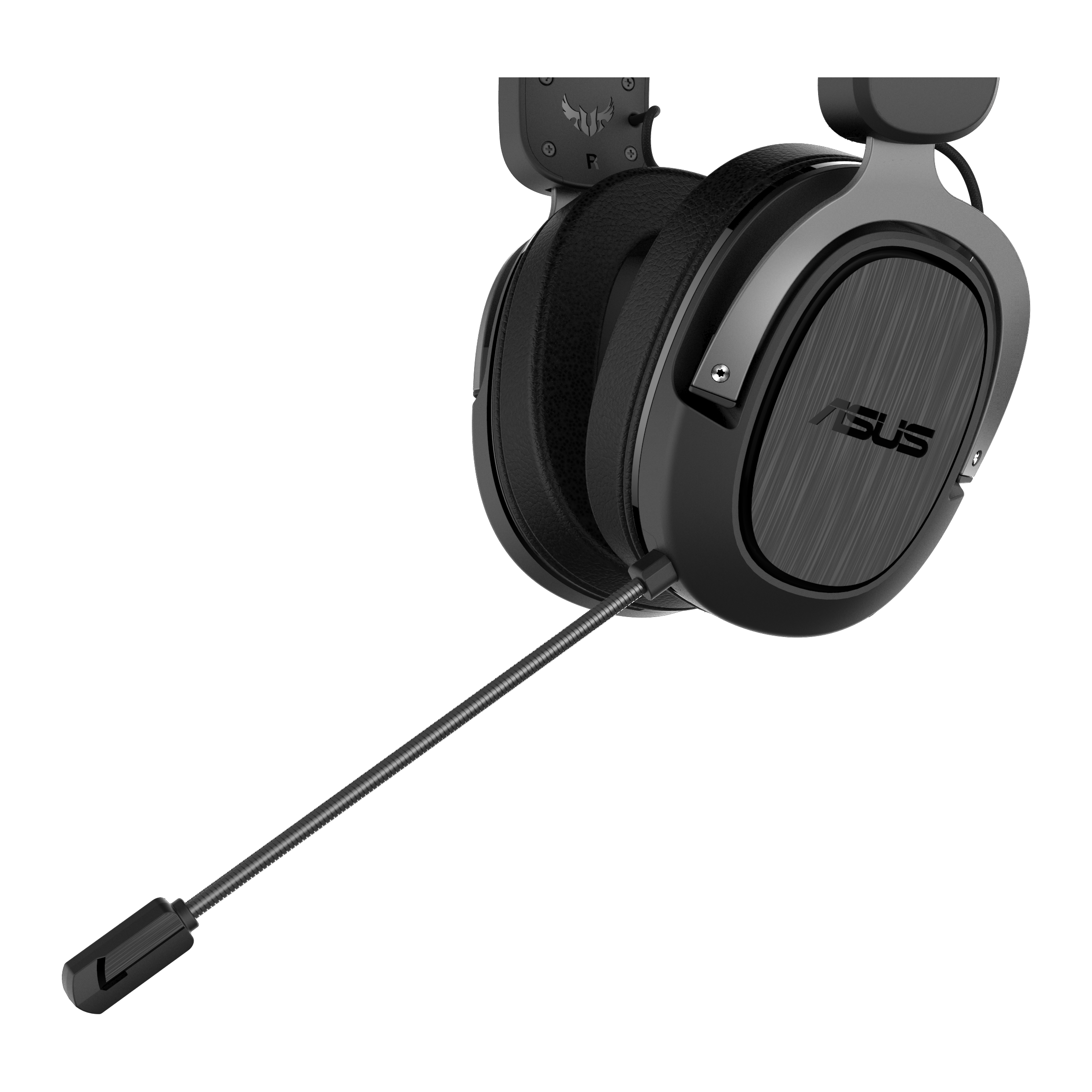 The TUF Gaming H3 Wireless headset is designed to provide incredible freedom with a 2.4 GHz wireless connection. With 50 mm ASUS Essence drivers, an airtight chamber design and virtual 7.1 surround sound, TUF Gaming H3 Wireless upgrades your in-game audio experiences by delivering wonderfully rich, immersive sound. The headset also features a lightweight design, ASUS fast-cooling ear cushions and a stainless-steel headband, which provide comfort and durability for gamers who play or stream for extended periods of time.