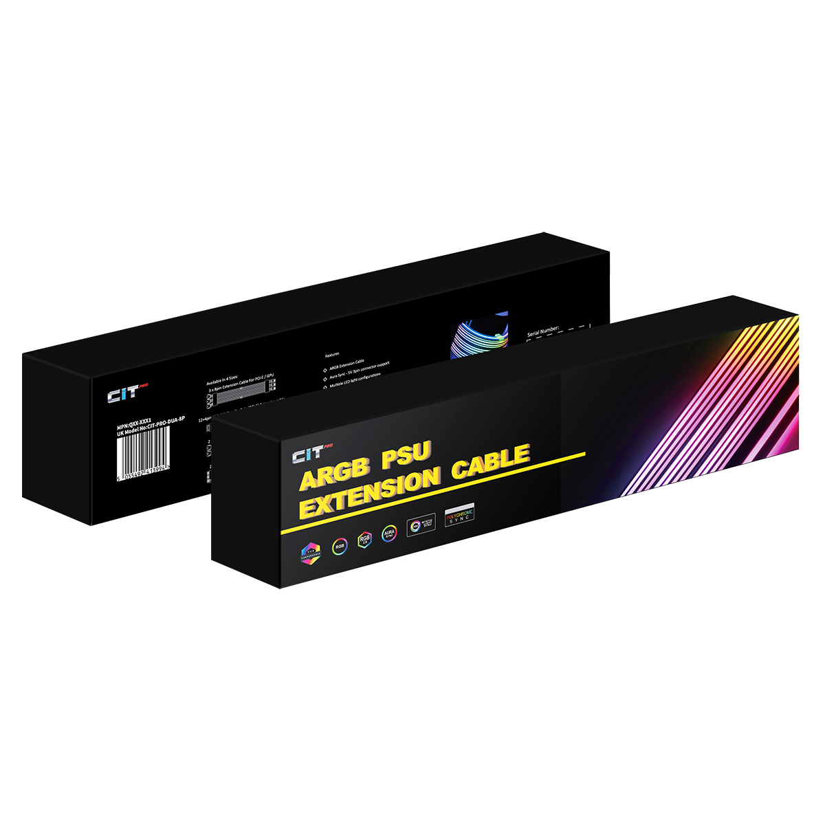 Take your chassis aesthetic to the next level with the CiT Pro 8-Pin ARGB GPU cable. CiT have a created a high-end quality extension cable, over 200mm in length this flexible cable is made with two 8-Pin headers for connecting to your Graphics Card. Stunning colours this cable is an impressive addition to your gaming PC.
