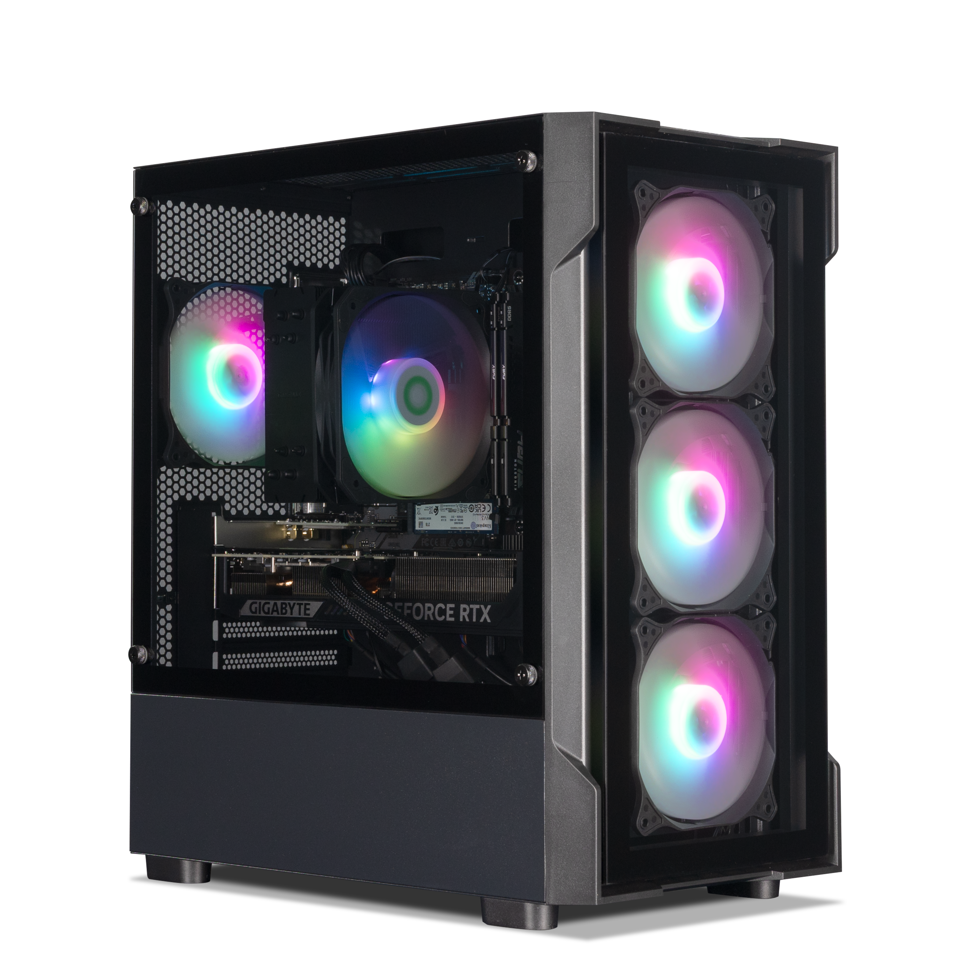 Equipped with a glass front panel and ARGB LED fans, the CiT Tsunami combines a sleek design with incredible lighting effects. The tempered glass panels draw attention to the spectacular interior while the excellent airflow keeps your high-performance components running smoothly even during the most intense gaming sessions.