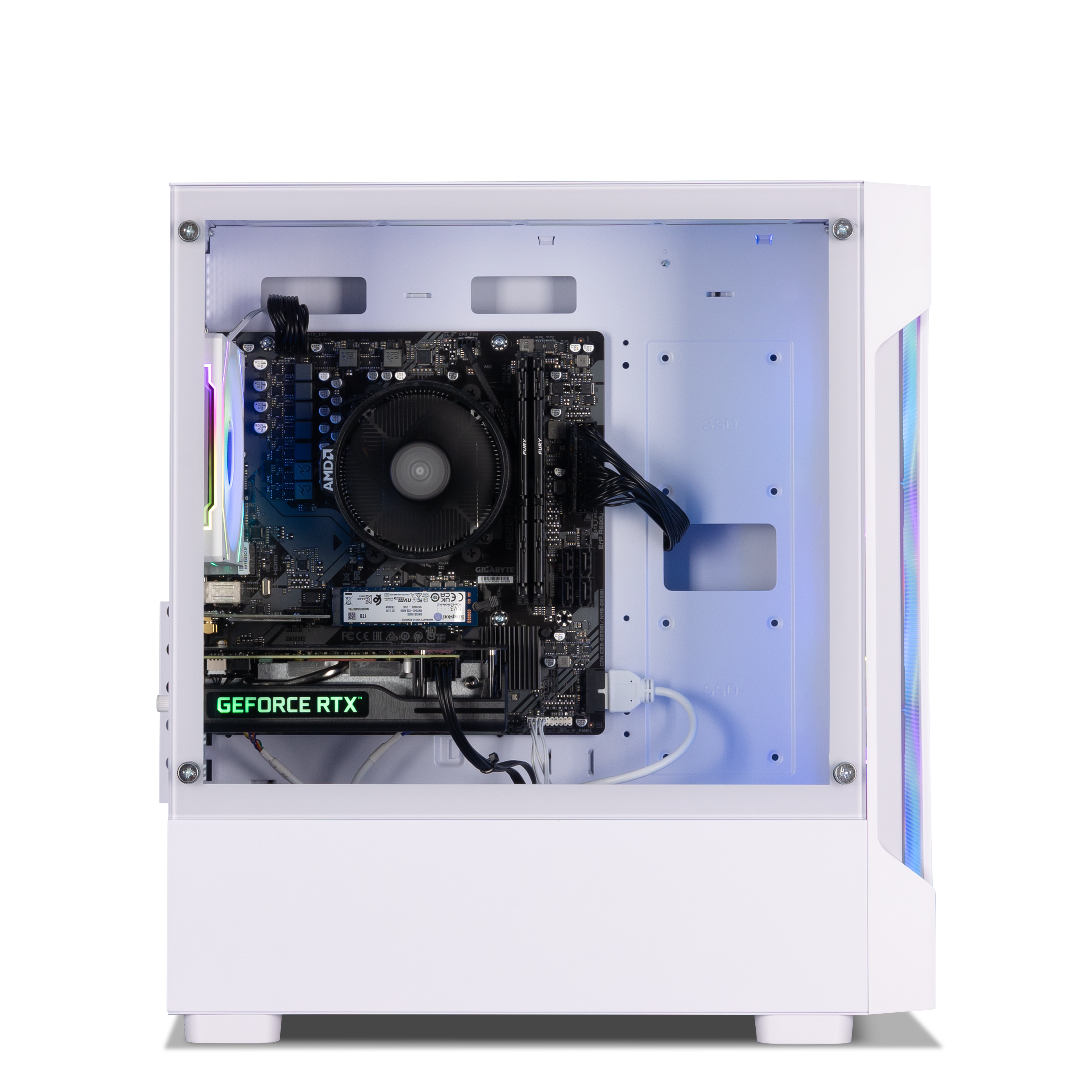 With its captivating mesh front panel and vibrant ARGB lighting, this case is sure to turn heads and make a statement. Equipped with four high-performance fans, your PC will stay cool even during intense gaming sessions. The tempered glass side panel showcases a stunning view of the interior.