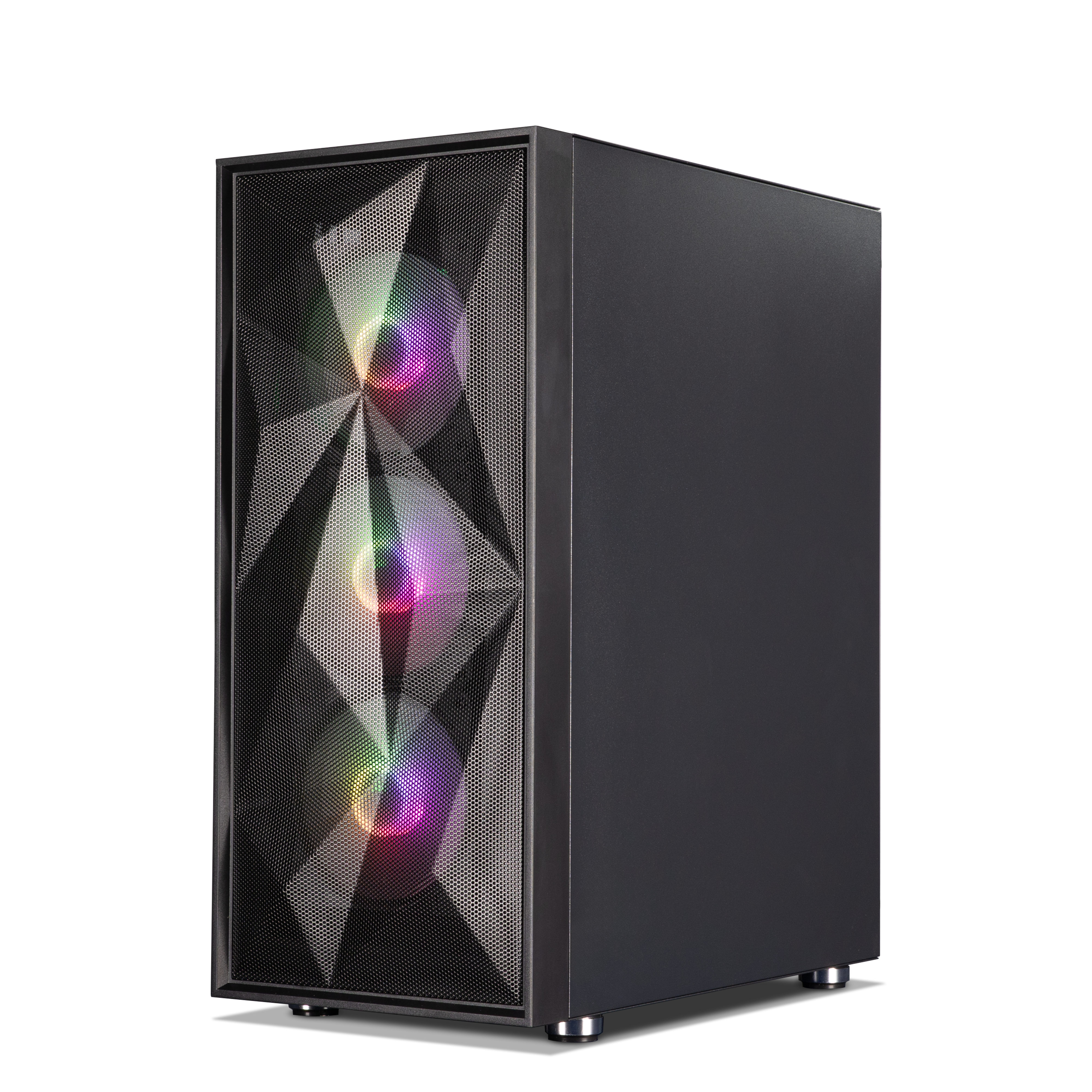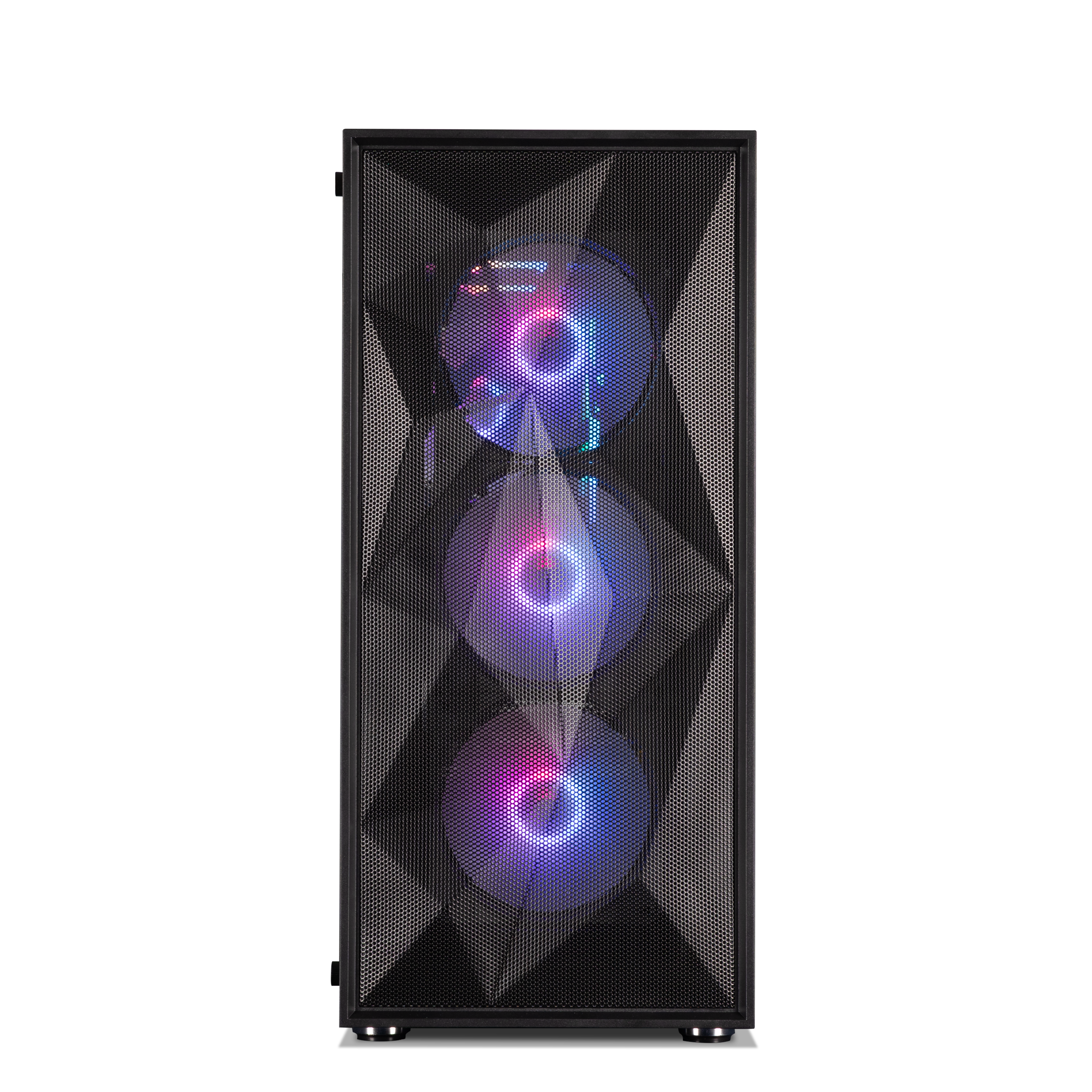 The CiT Phantom XL is a stunning marriage between beauty and cooling peformance, with a front angled mesh panel and side tempered glass panel setup that gives you a stunning view of the powerful hardware within whilst allowing cool air to flow through the system. Featuring a sleek black exterior and ARGB fans to accentuate the power within, and with ample room for high-performance components like the Ryzen 7 9700X and RTX 5080, this case is a perfect blend of style and performance worthy of the hardware within.