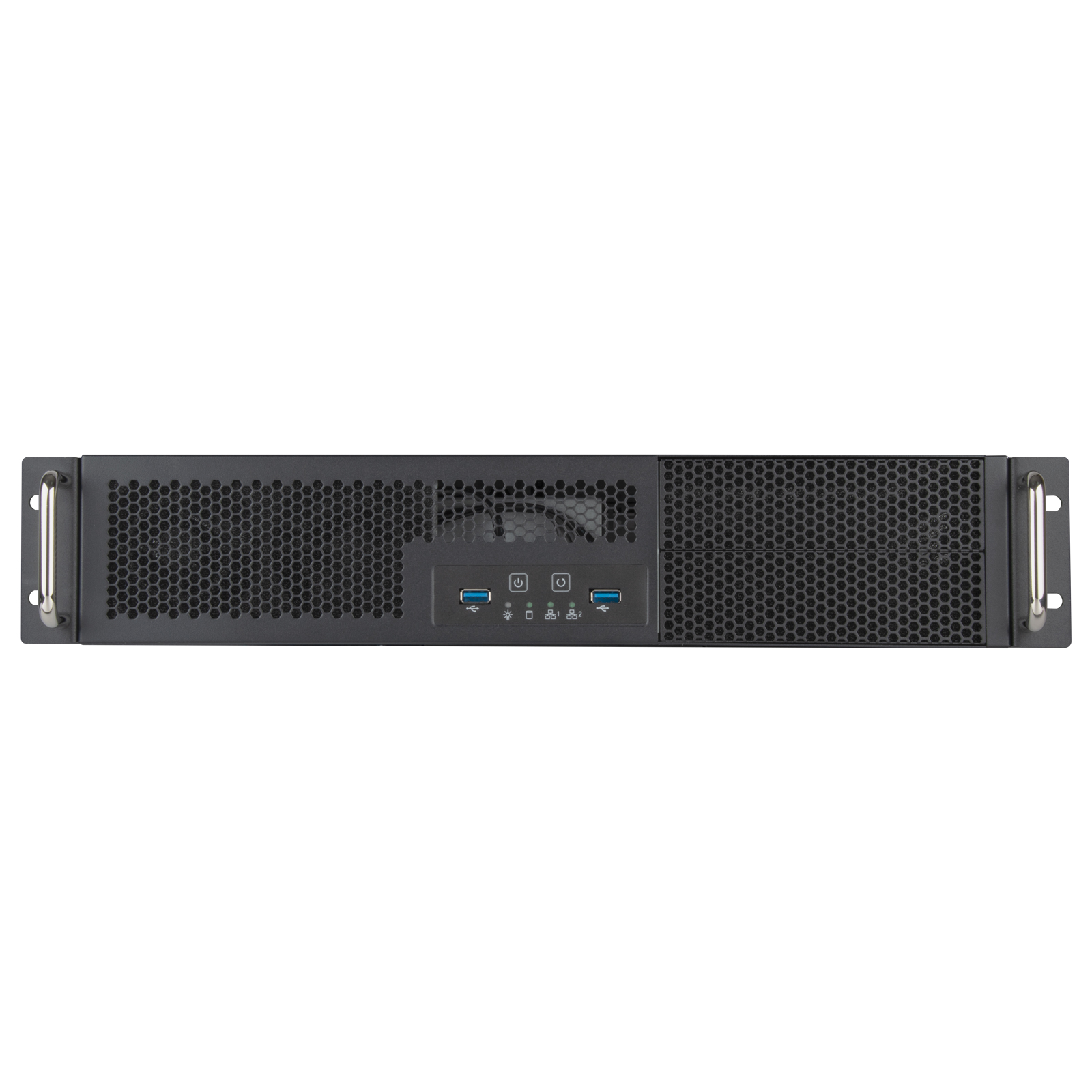 A built-in fan bracket at the front supports 2 x 8025mm fans which supplies plentiful airflow for a 2U form factor system.