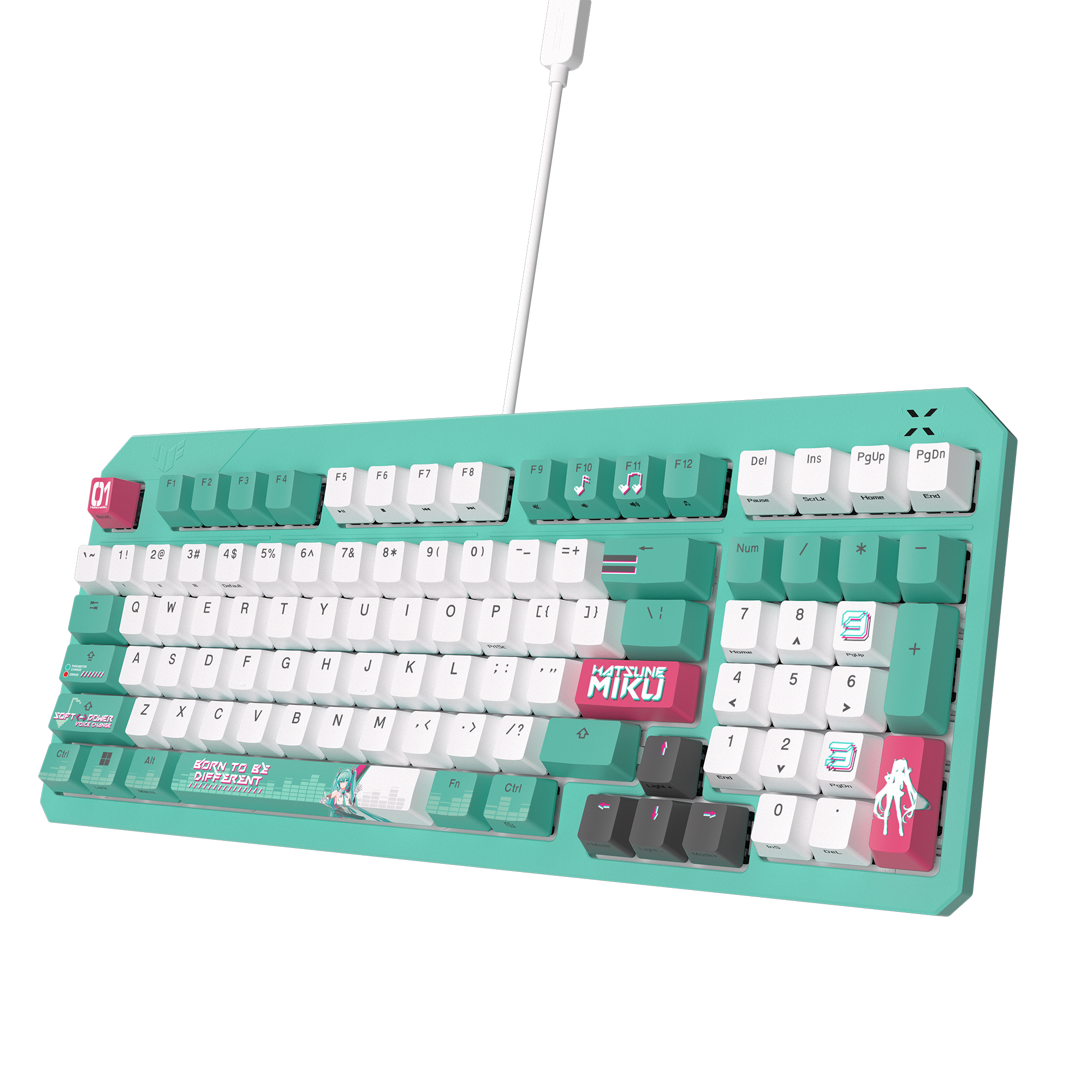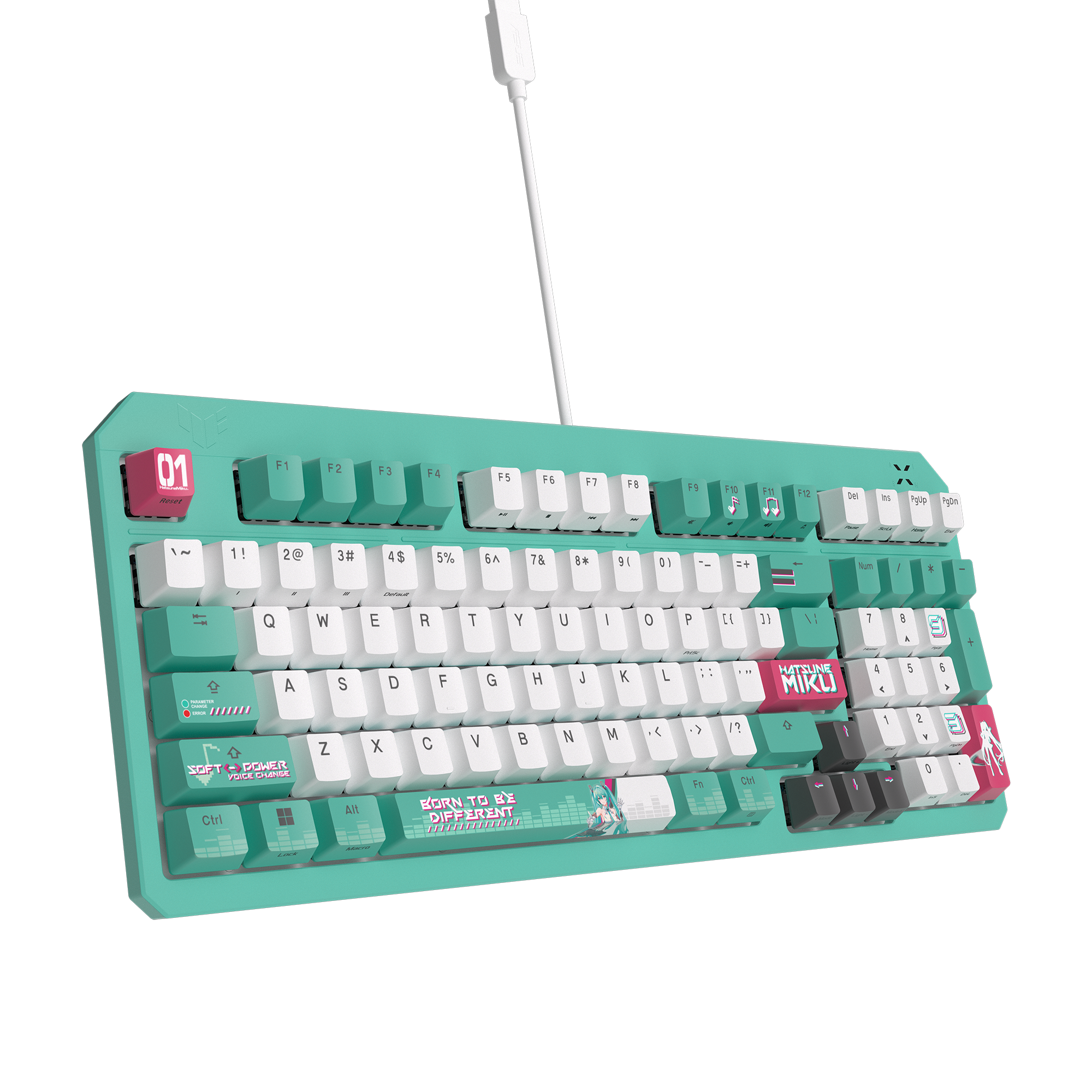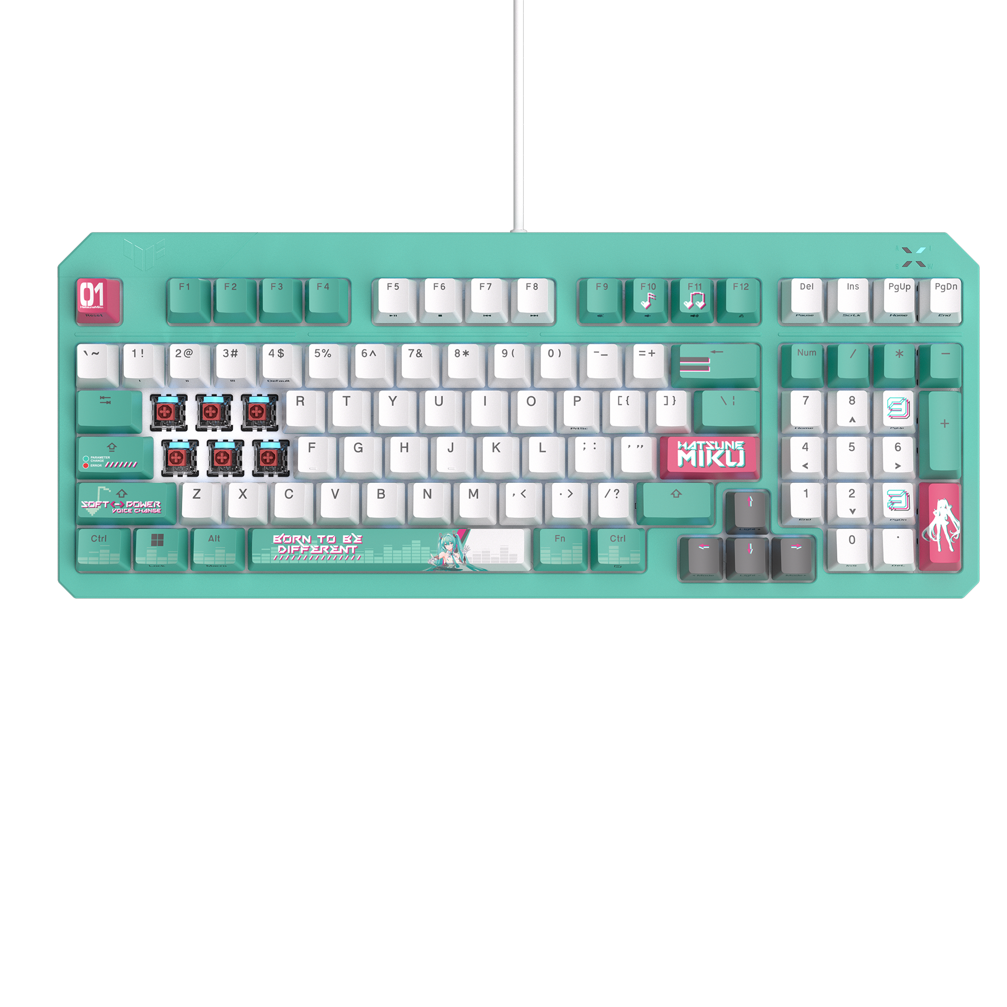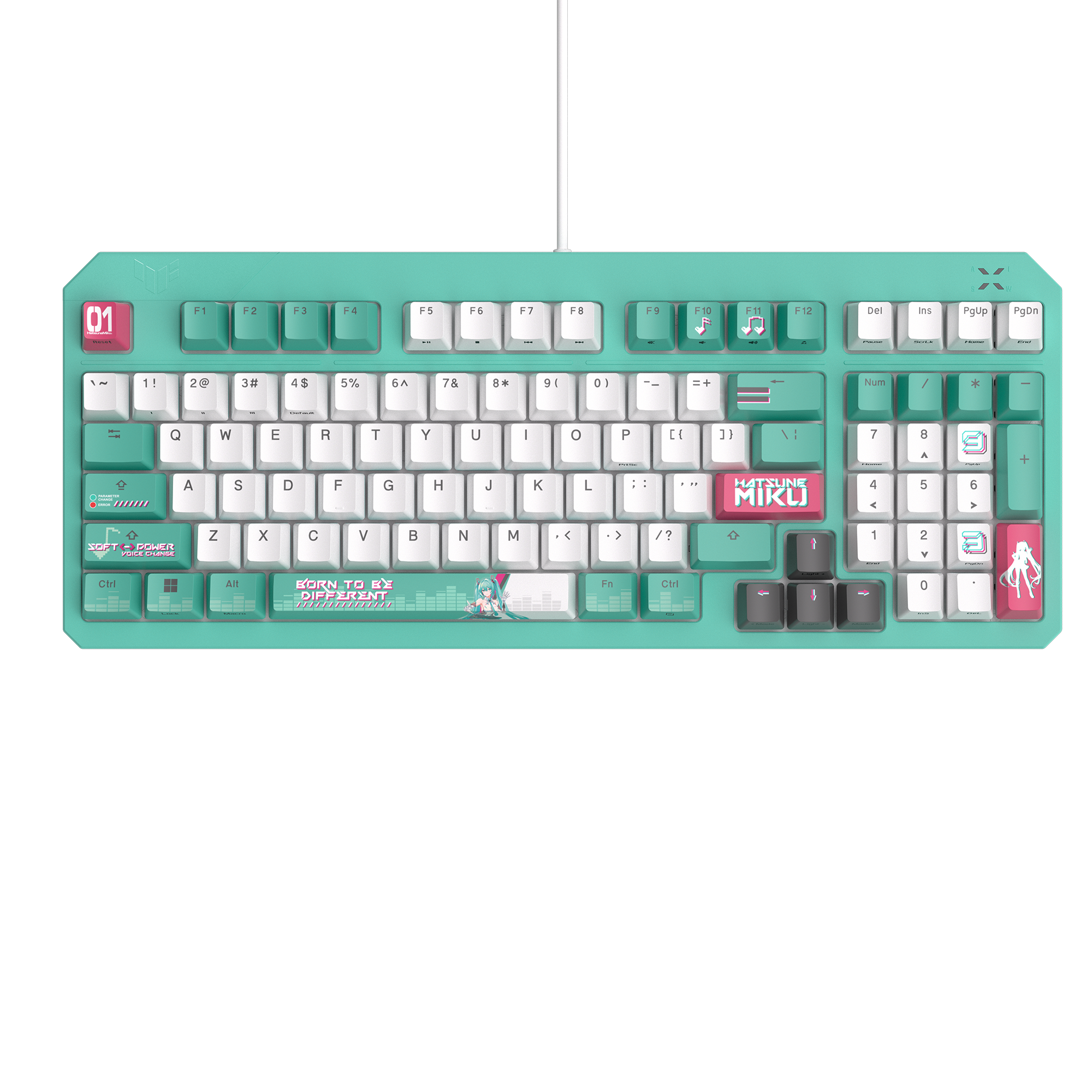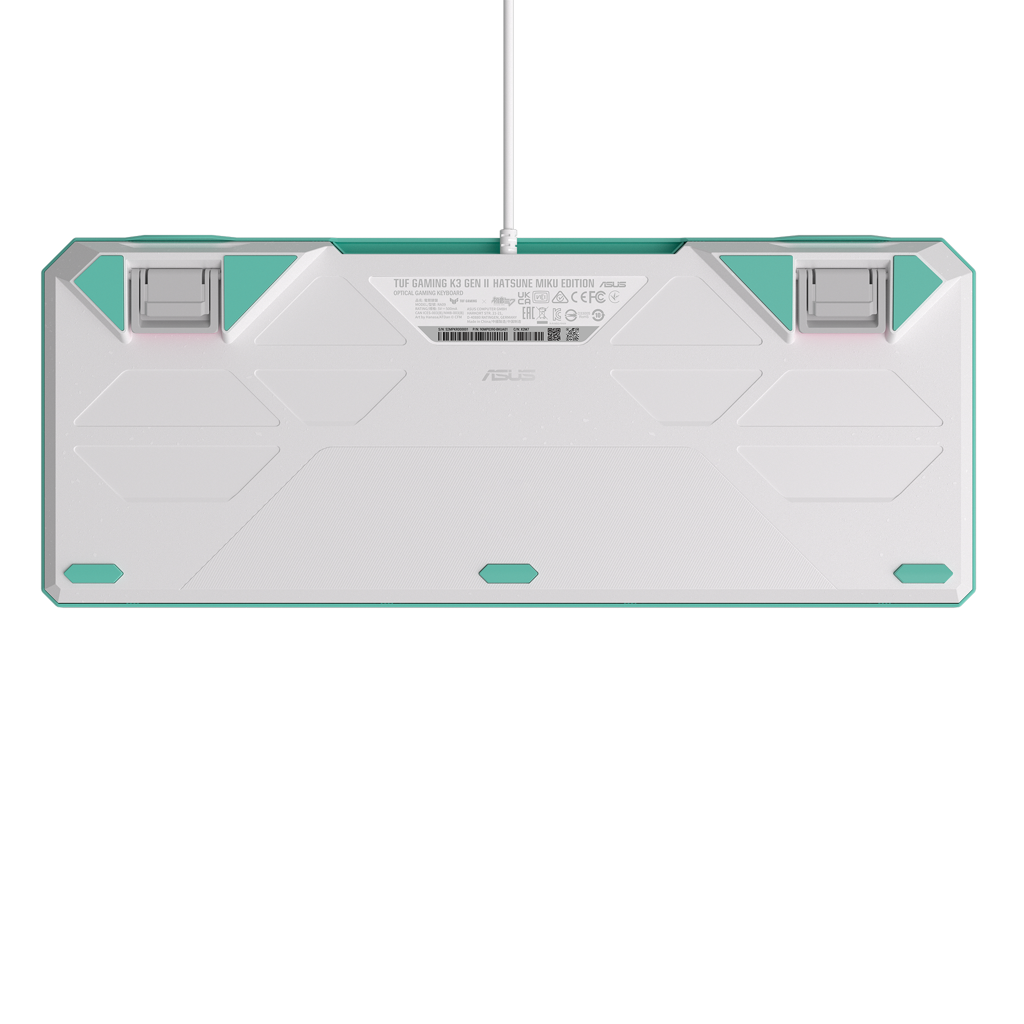 ASUS TUF Gaming K3 Gen II Hatsune Miku Edition features a 97-key layout with dedicated arrow and navigation keys, providing gamers with a portable and compact gaming keyboard that doesn’t sacrifice functionality.