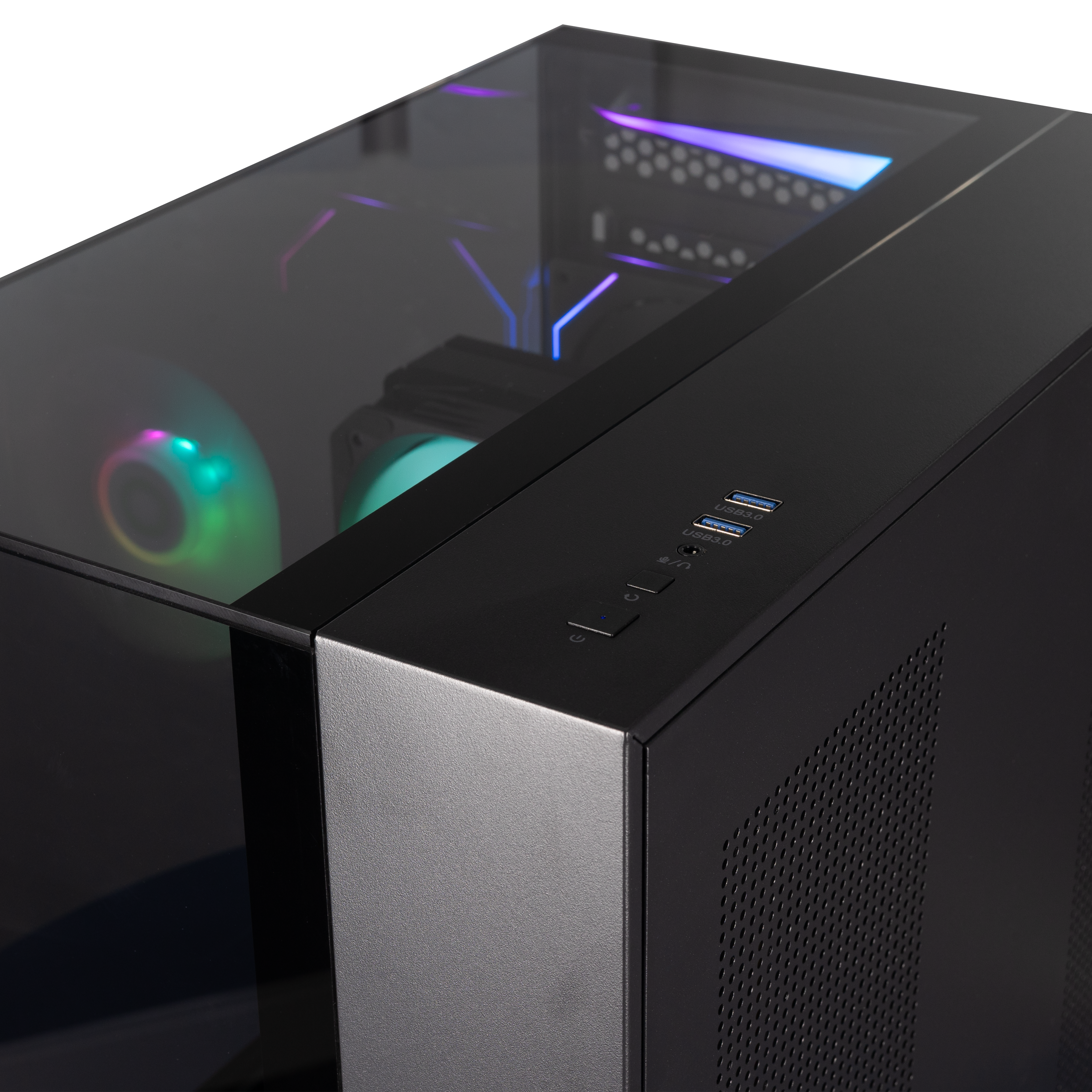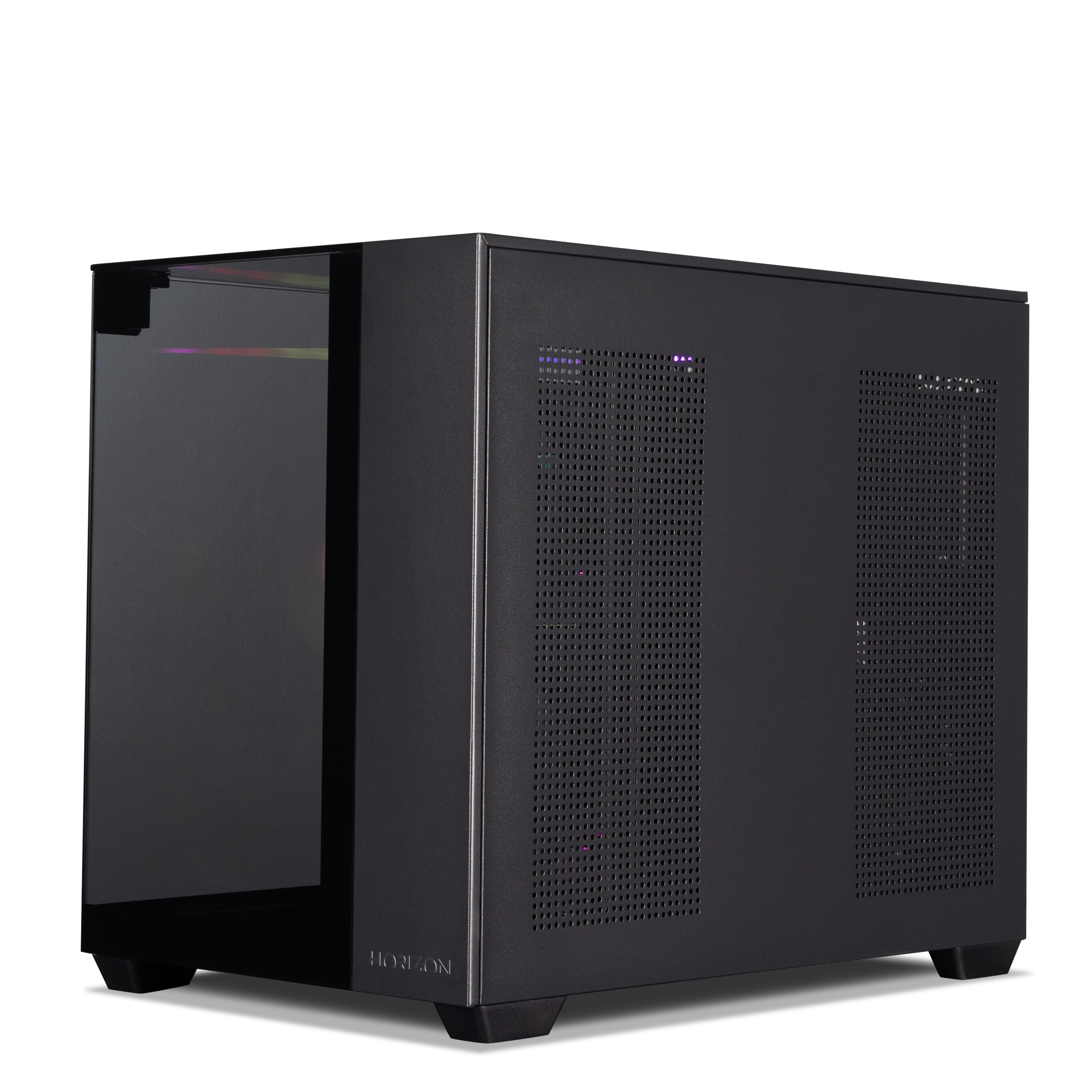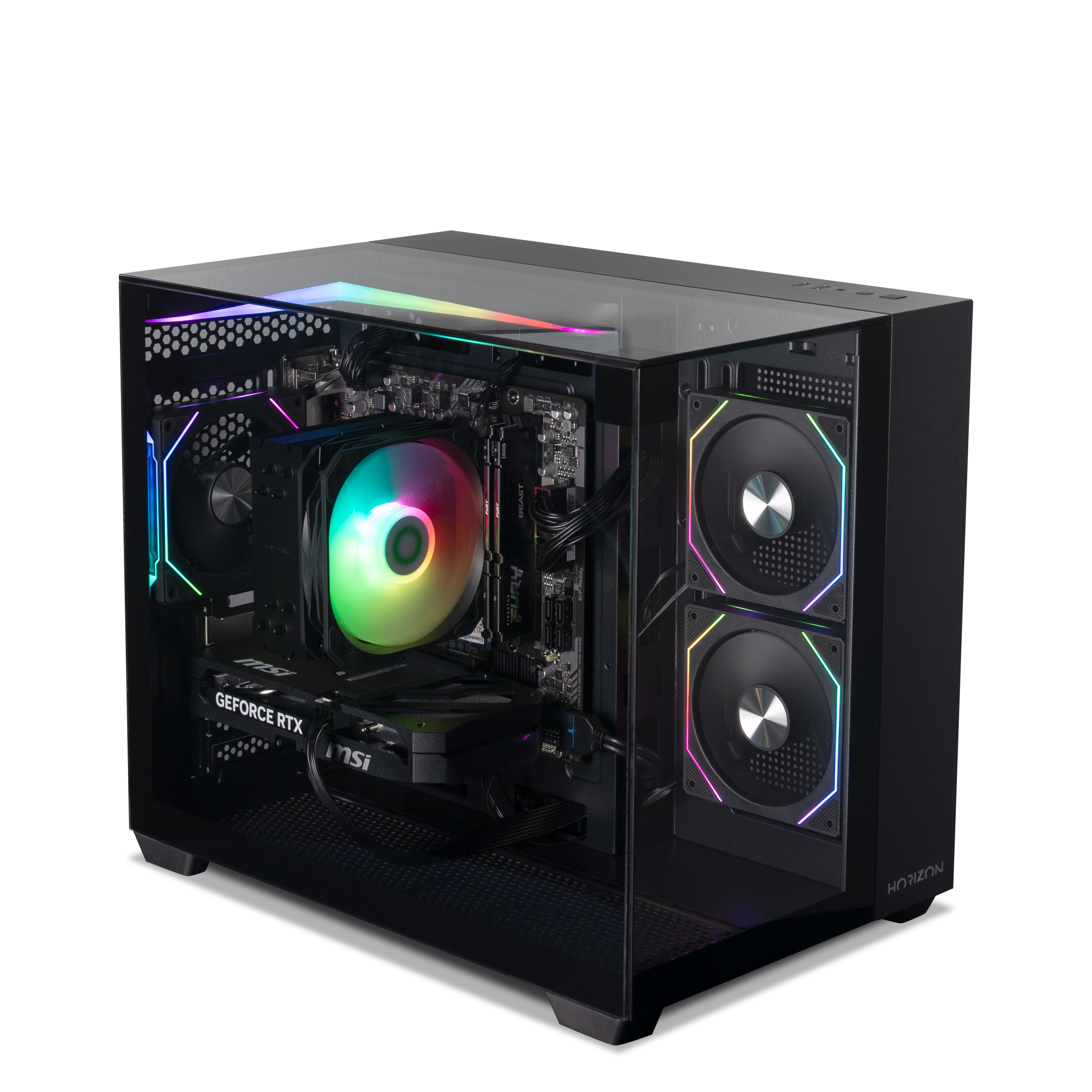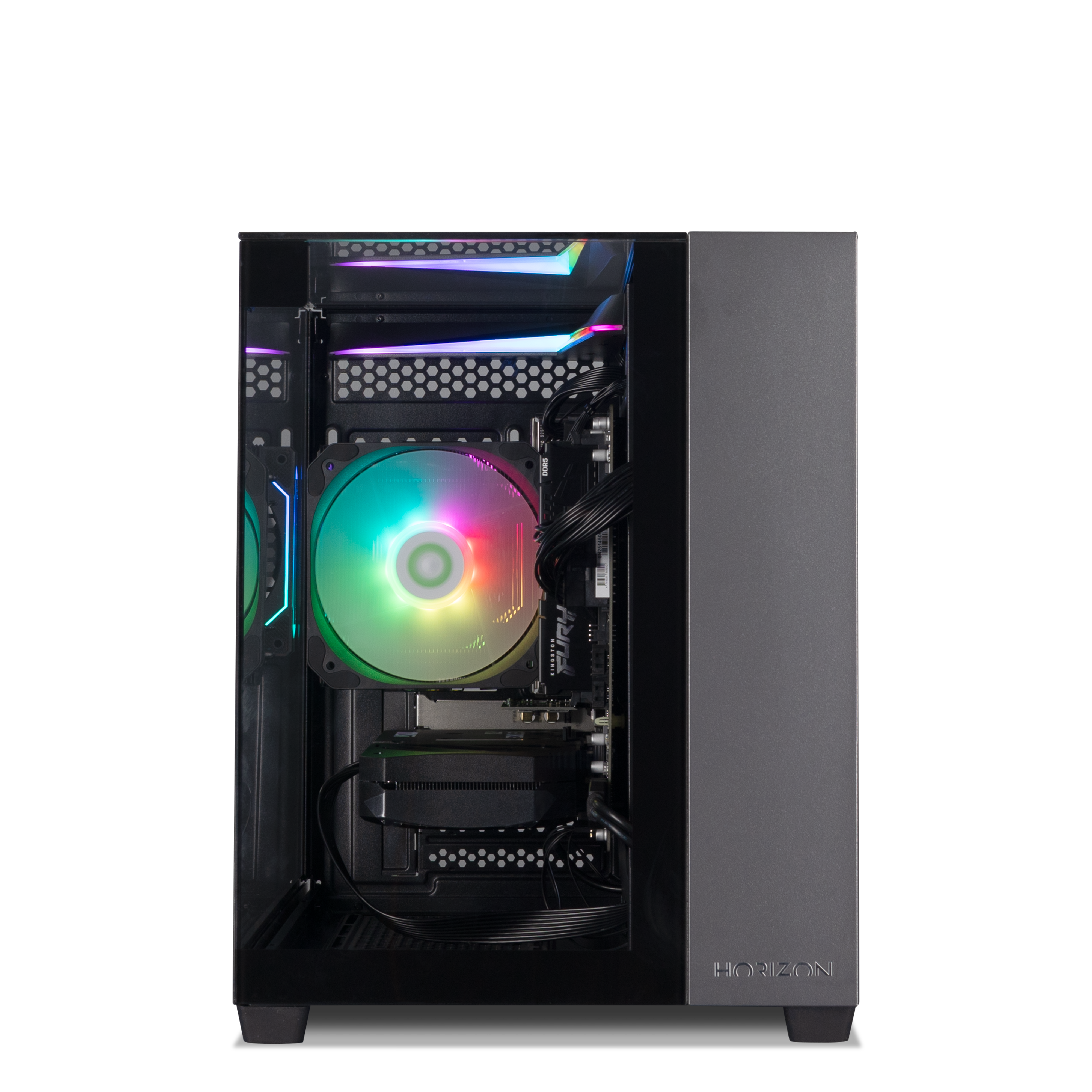 This Horizon gaming PC is a real head-turner. Housed in the Montech AIR 903 MAX Mid-Tower Gaming Case, it combines metal, mesh, and tempered glass panels to give it a standout look. For a boost in its cool factor it features three ARGB front fans, providing excellent airflow and stunning lighting effects. This gaming PC doesn't just play great games, it looks the part too.