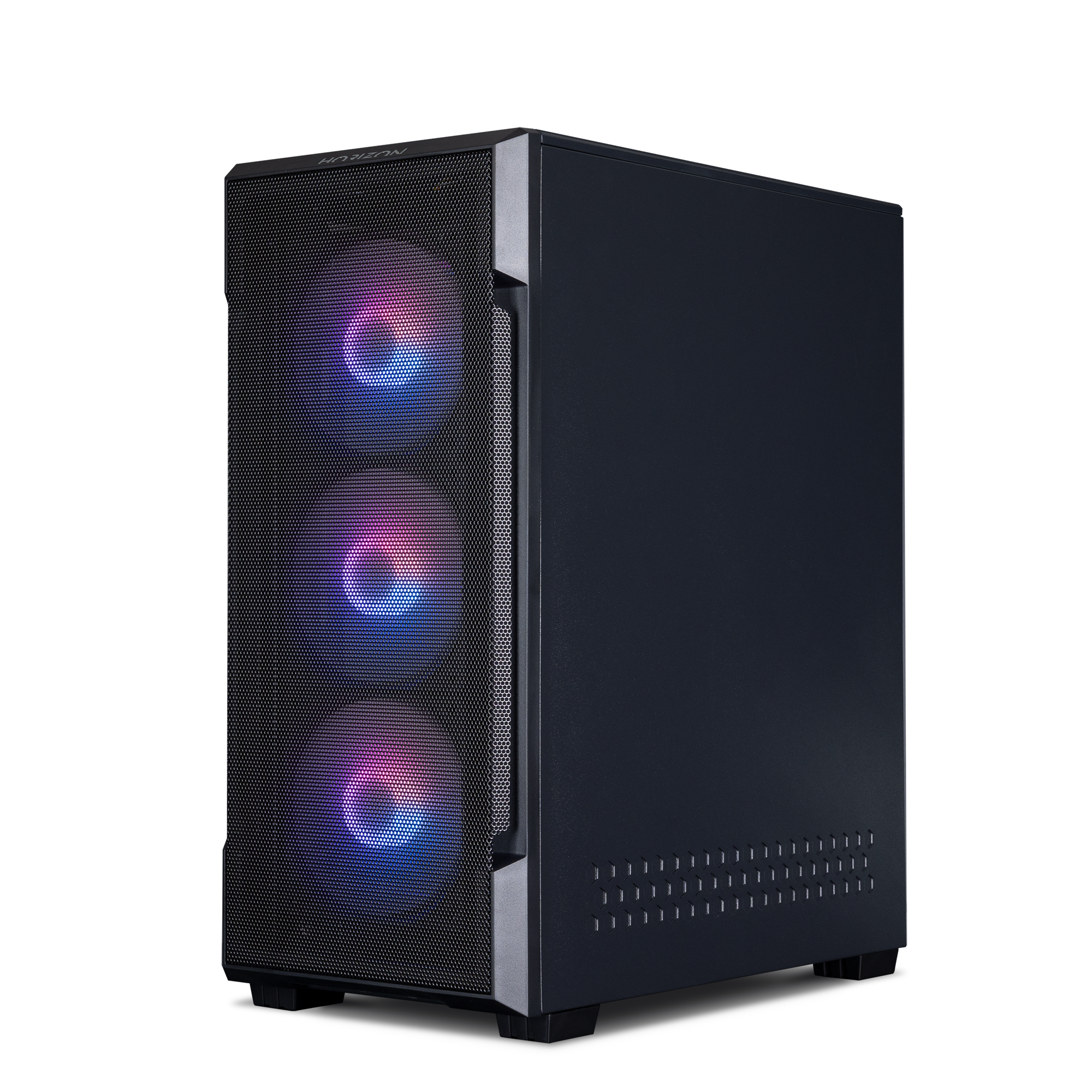 Equipped with a mesh front panel and ARGB LED fans, the CiT Crossfire combines a sleek design with incredible lighting effects. The tempered glass side panel draws attention to the spectacular interior while the excellent airflow keeps your high-performance components running smoothly even during the most intense gaming sessions.