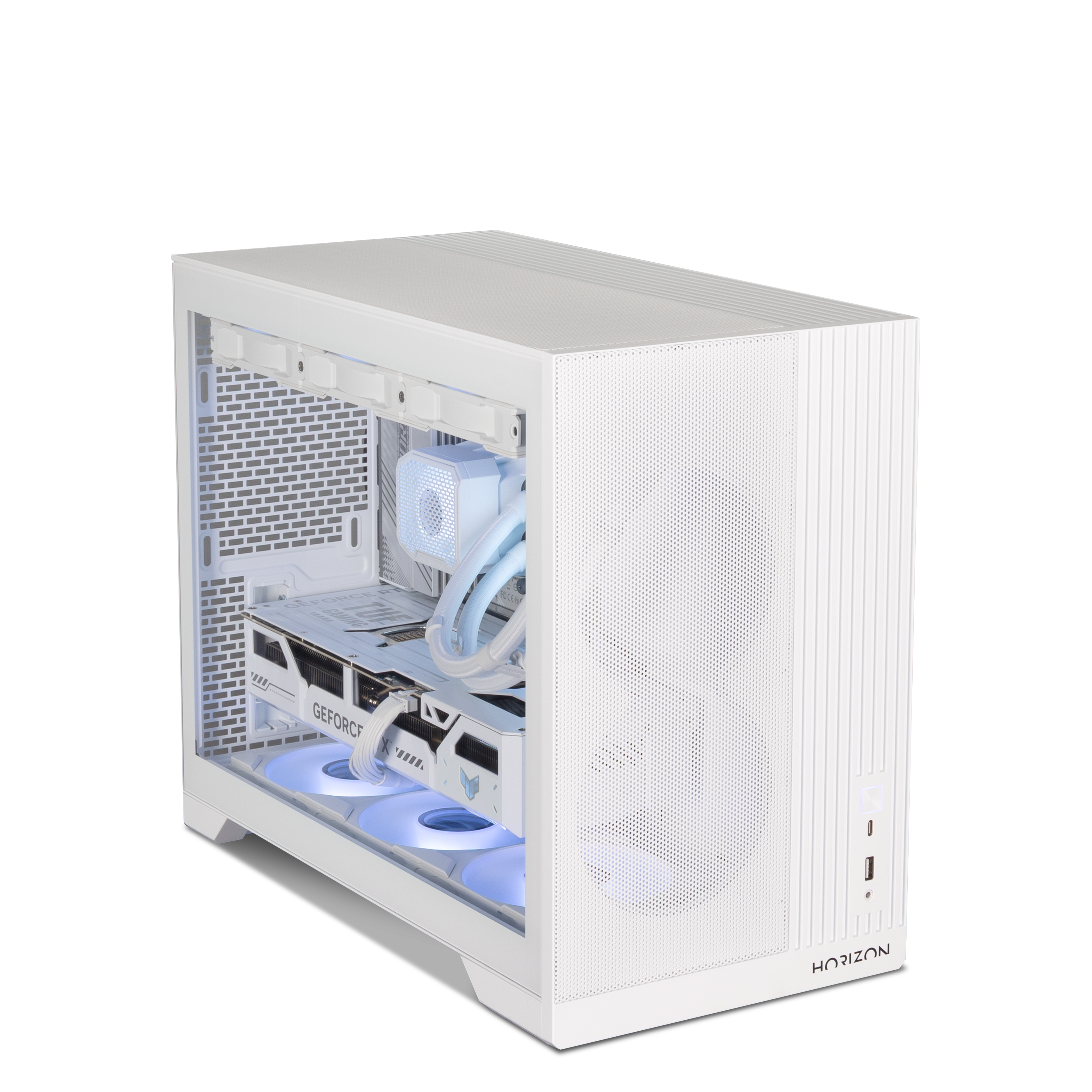 Experience unparalleled gaming performance with this Horizon gaming PC! Powered by the AMD Ryzen 7 9800X3D processor and NVIDIA GeForce RTX 5070 Ti graphics card, this rig delivers breathtaking visuals and smooth, stutter-free gameplay. Housed in a sleek and small white casem it's a stunning centerpiece for your gaming setup..