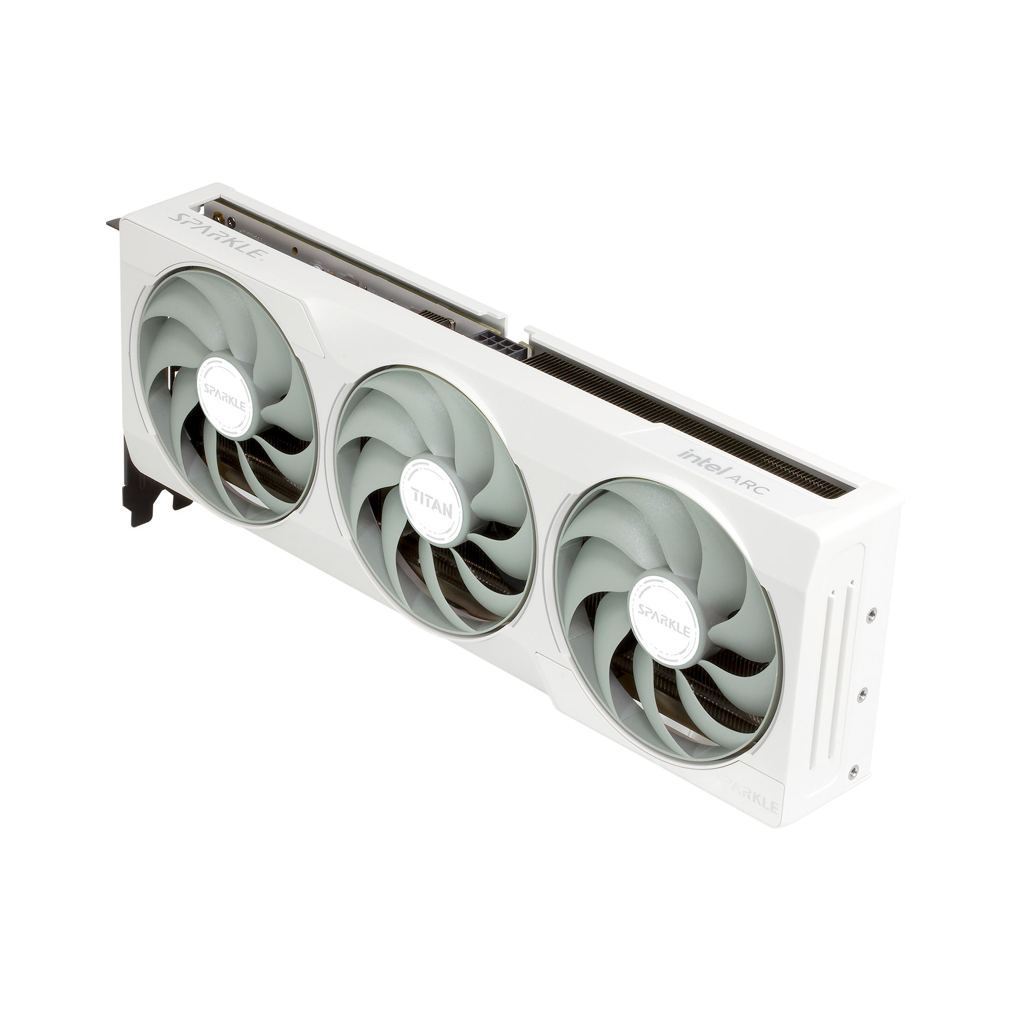 The SPARKLE Intel® Arc™ B580 TITAN Luna OC Graphics Card, offers high-resolution gaming with Intel XeSS AI upscaling, ray tracing, and 8K media support, plus accelerated AI features for enhanced creation and editing through Intel AI Playground.