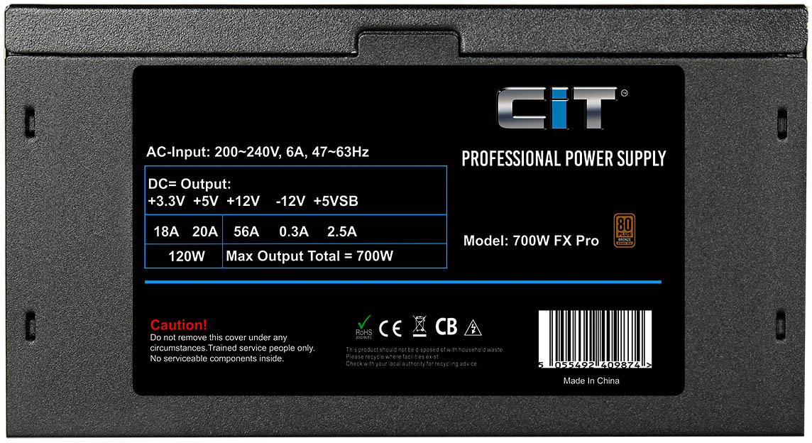 The FX Pro series is the latest PSU series launched by CiT. The FX Pro range are a non-modular power supply that we offer in four power configurations, 400W, 600W, 700W and 800W all are 80 Plus Bronze certified. Not only is this power supply impressive in performance but the components used in this power supply are components normally used by top tier brands. This Power supply is perfect for enthusiastic gamers who are pursuing the ultimate gaming experience. Realise a more powerful performance.