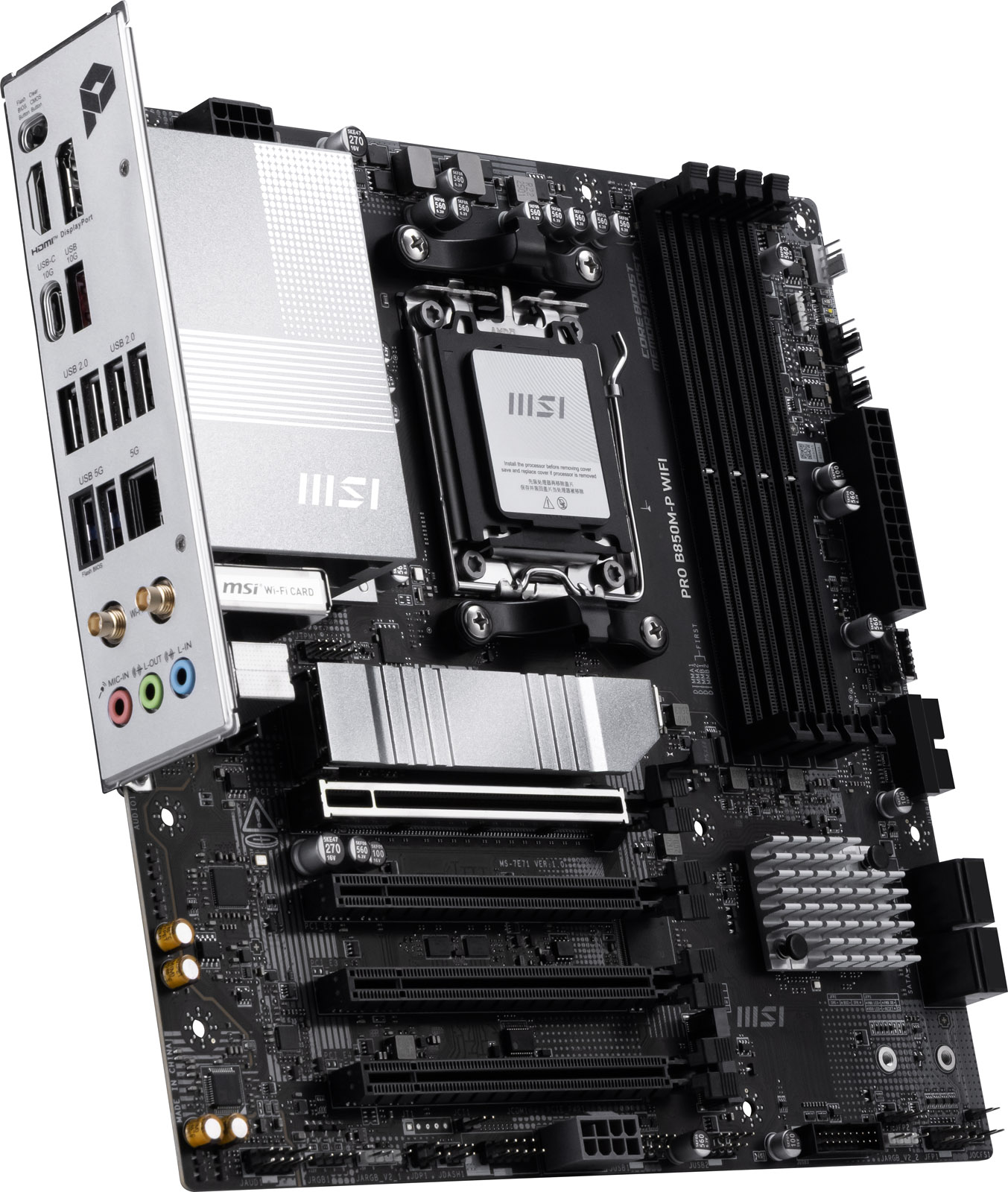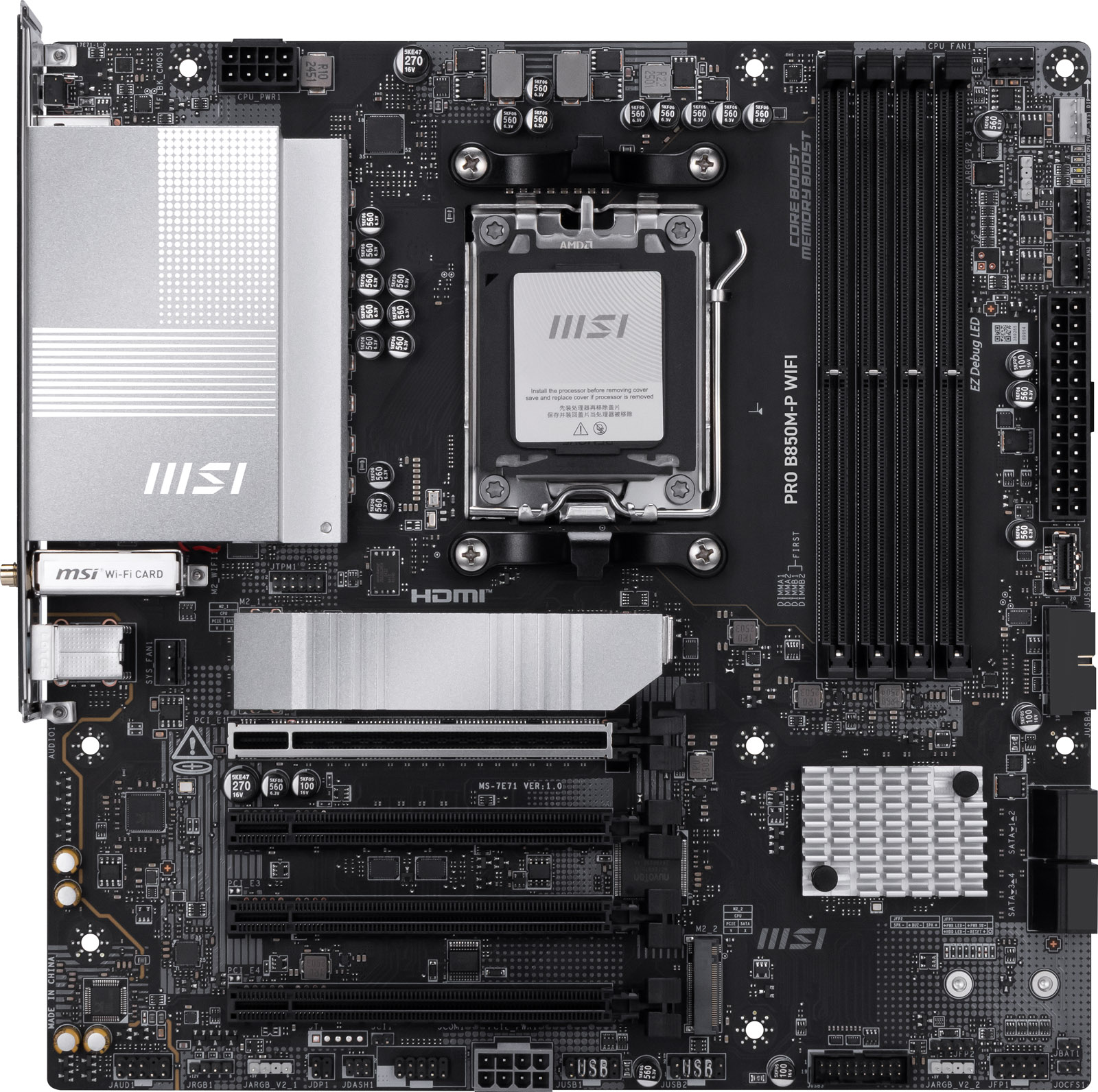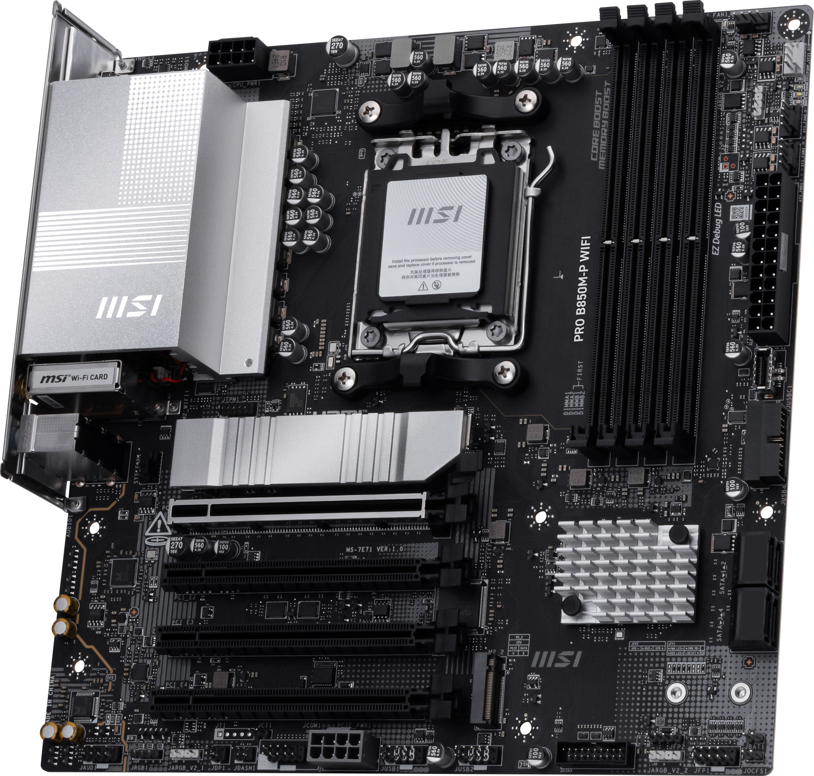 The PRO B850M-P WIFI is a creation-oriented mATX motherboard with a Direct 7 Phase VRM, constructed around the latest AMD B850 chipset which supports AMD Ryzen 9000 / 8000 / 7000 series desktop processors, featuring PCIe 5.0, 5G LAN, Wi-Fi 7, DDR5 and Frozr design that delivers the capacity to support a broad spectrum of both cutting-edge and innovative hardware.