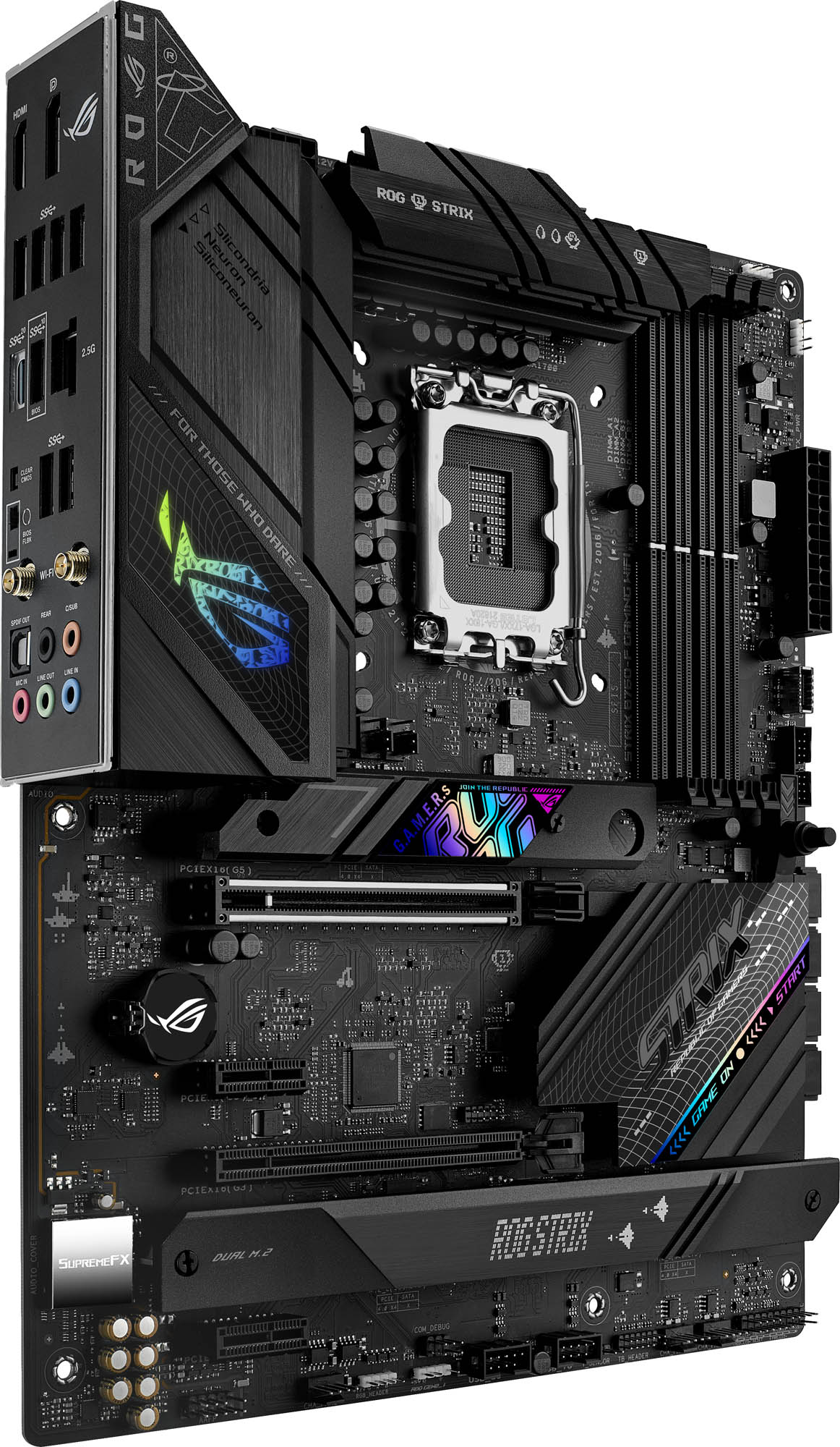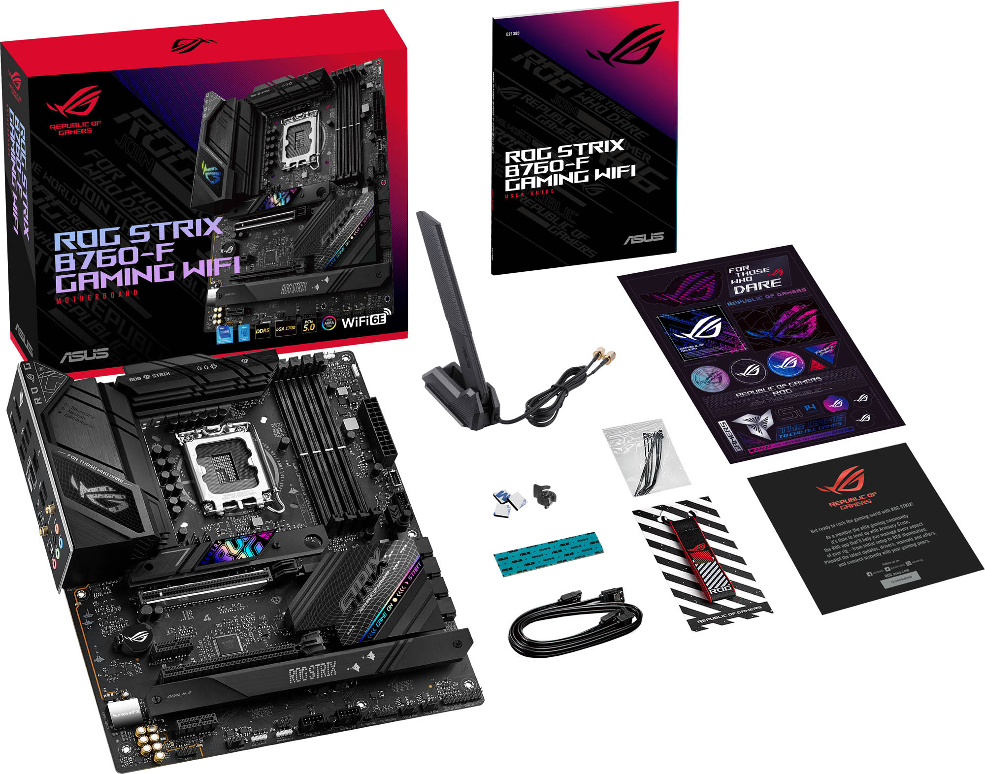 Leap into the future with the ROG Strix B760-F, a fantastic upgrade into 13th Gen with its dominant power solution and best-in-class DDR5 speeds. Its next-gen PCIe 5.0 slot gives overwhelming graphics card throughput for maximum FPS, and you can minimize lag via hyperfast WiFi 6E or 2.5G LAN. All these perks come alongside distinctive rainbow stripes and retro accents so you can show off your gamer pride.