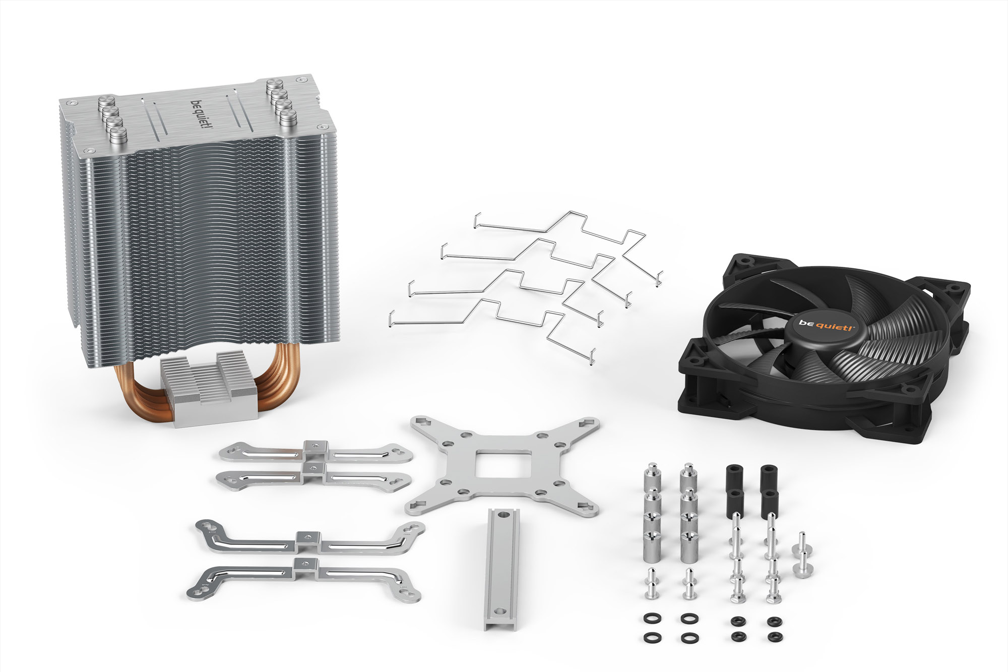Pure Rock 2 is be quiet!’s CPU cooler for silent multimedia and graphics systems. It provides an excellent price-to-performance ratio with 150W TDP cooling efficiency, four 6mm heat pipes, a Pure Wings 2 120mm PWM fan and convenient design for mounting from atop the motherboard.