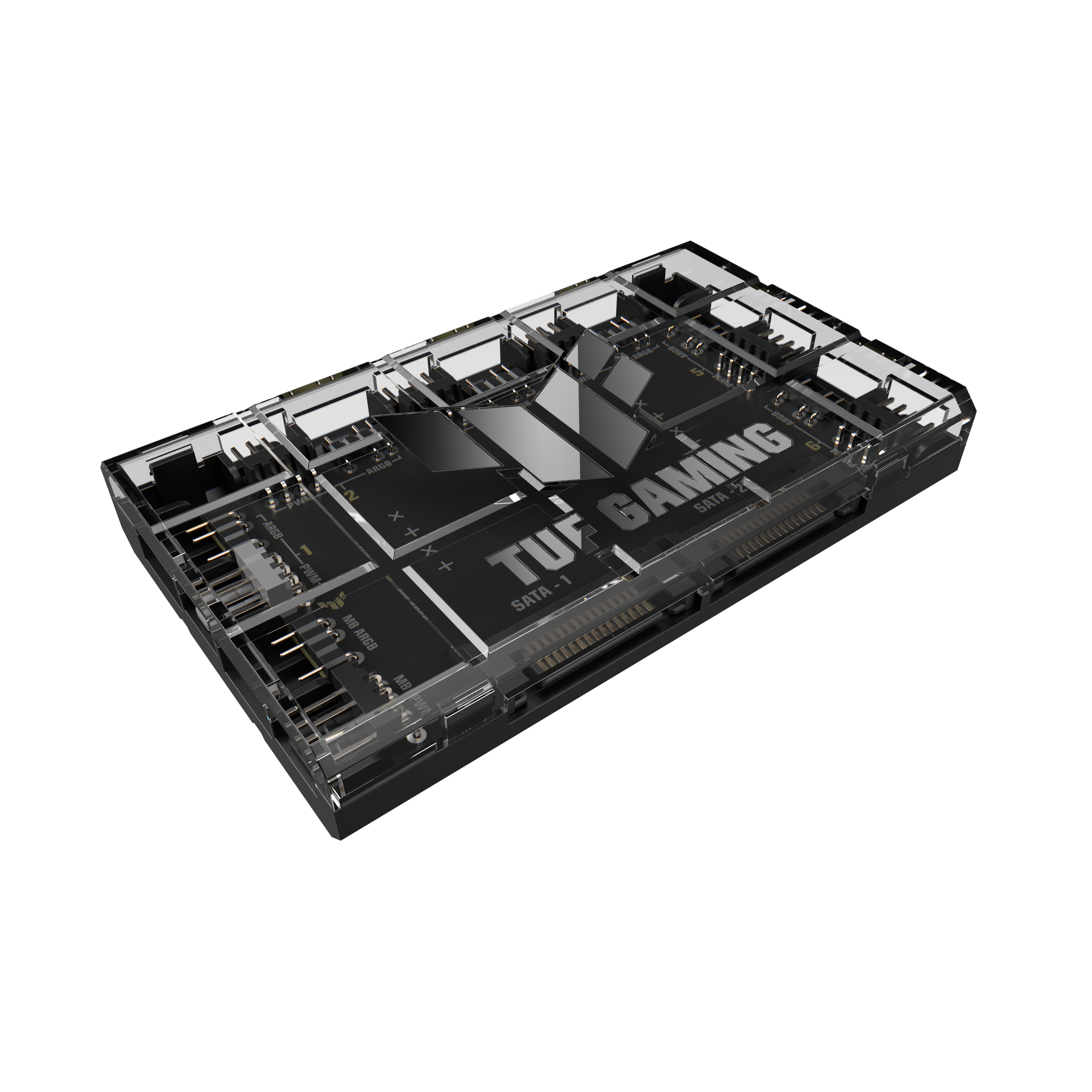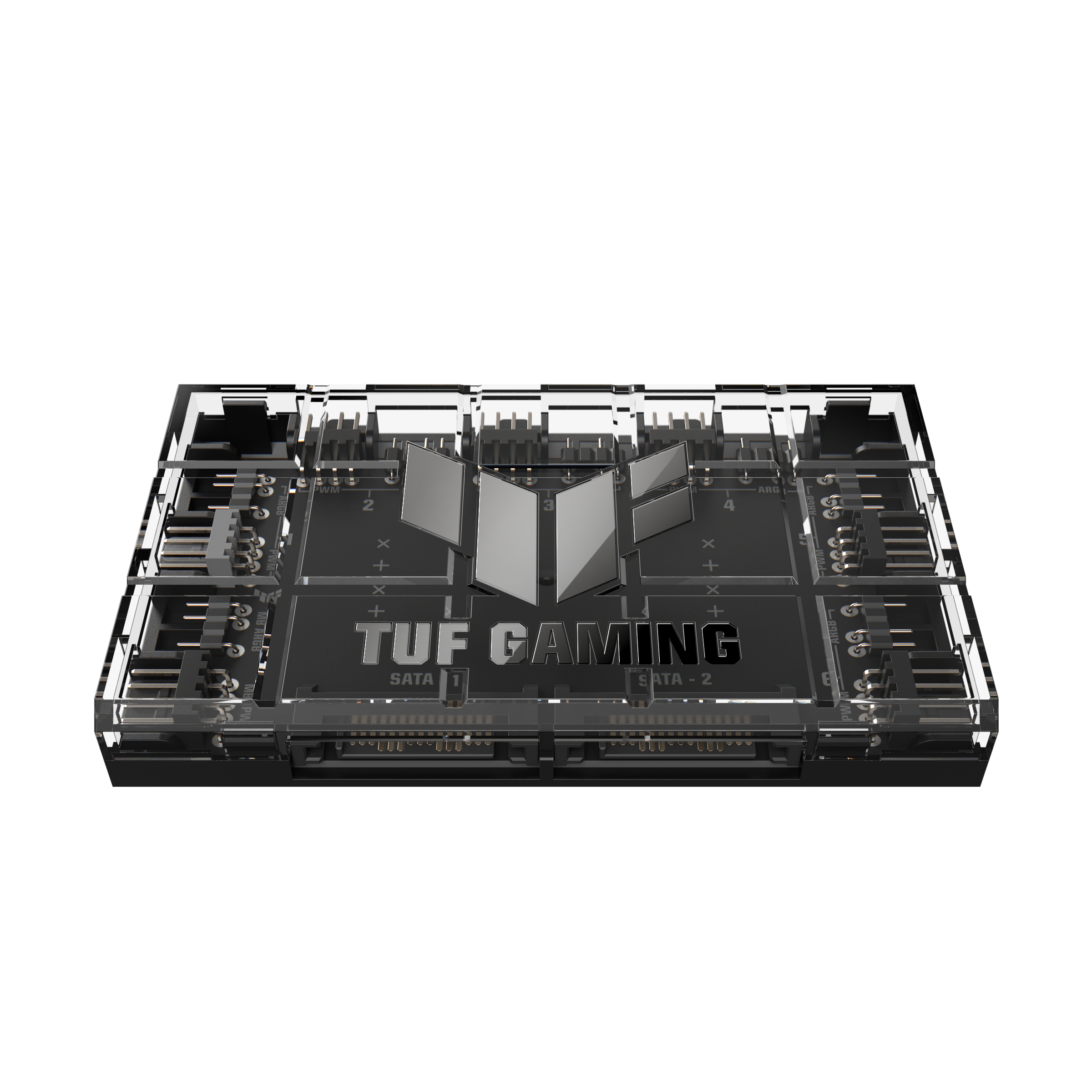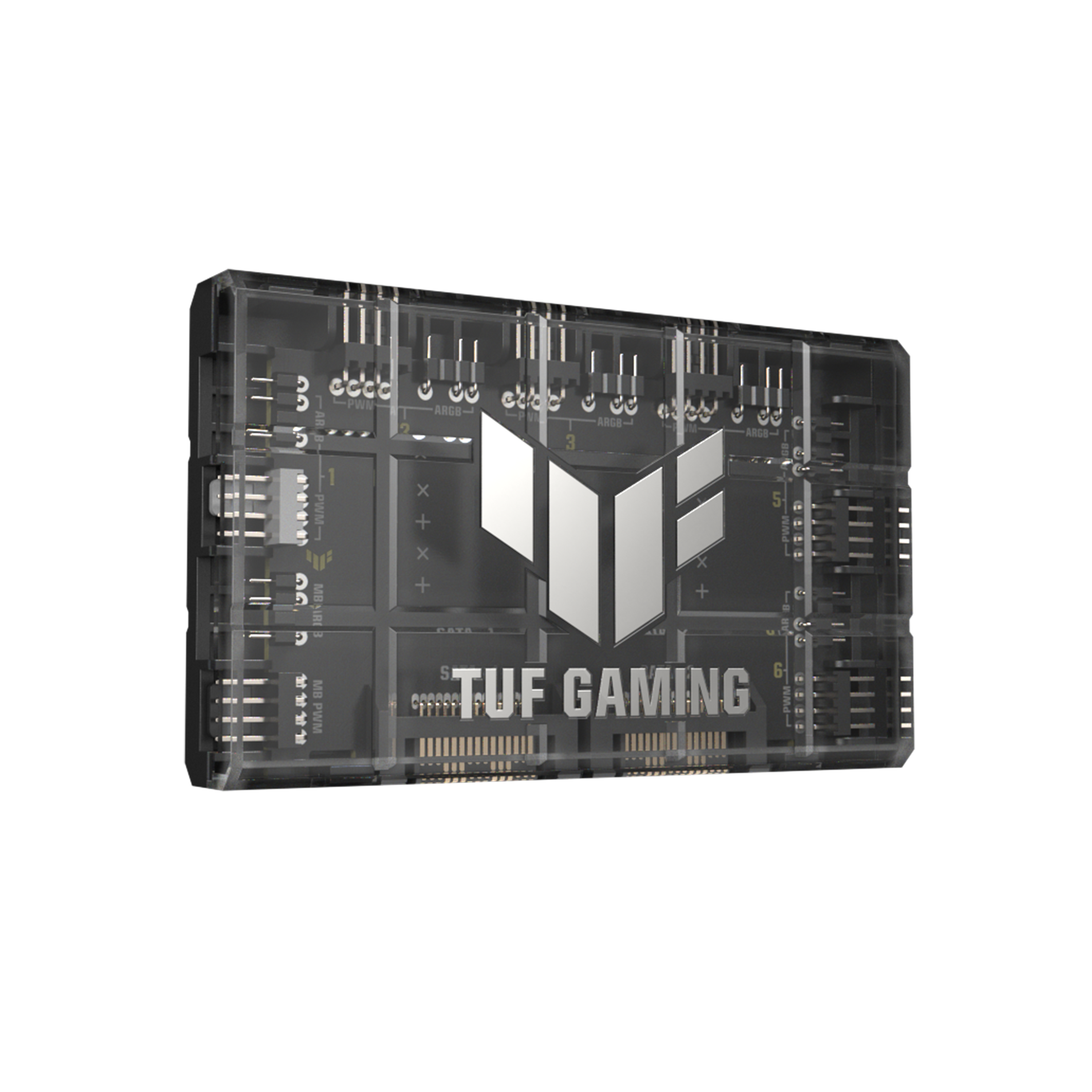 TUF Gaming ARGB PWM Fan Hub connects up to six case fans for PWM and ARGB control, syncing cooling and lighting effects seamlessly