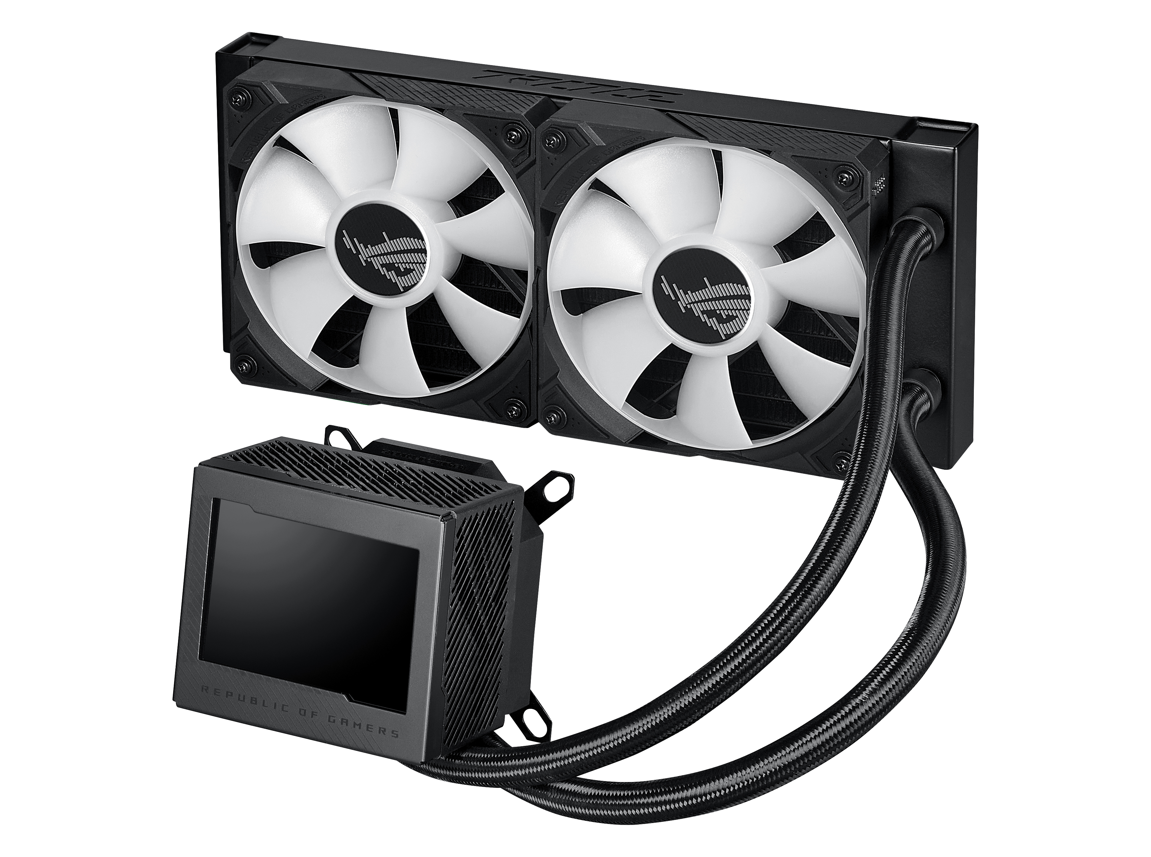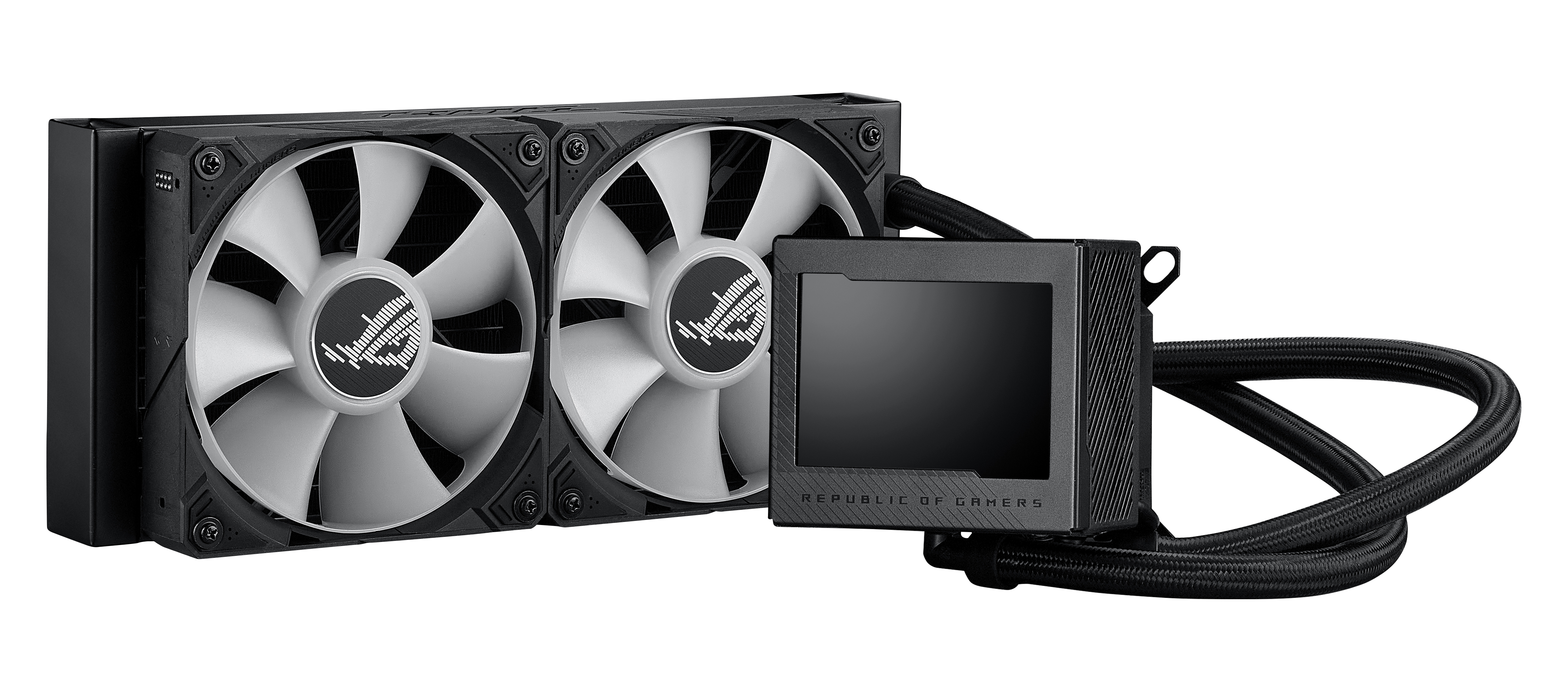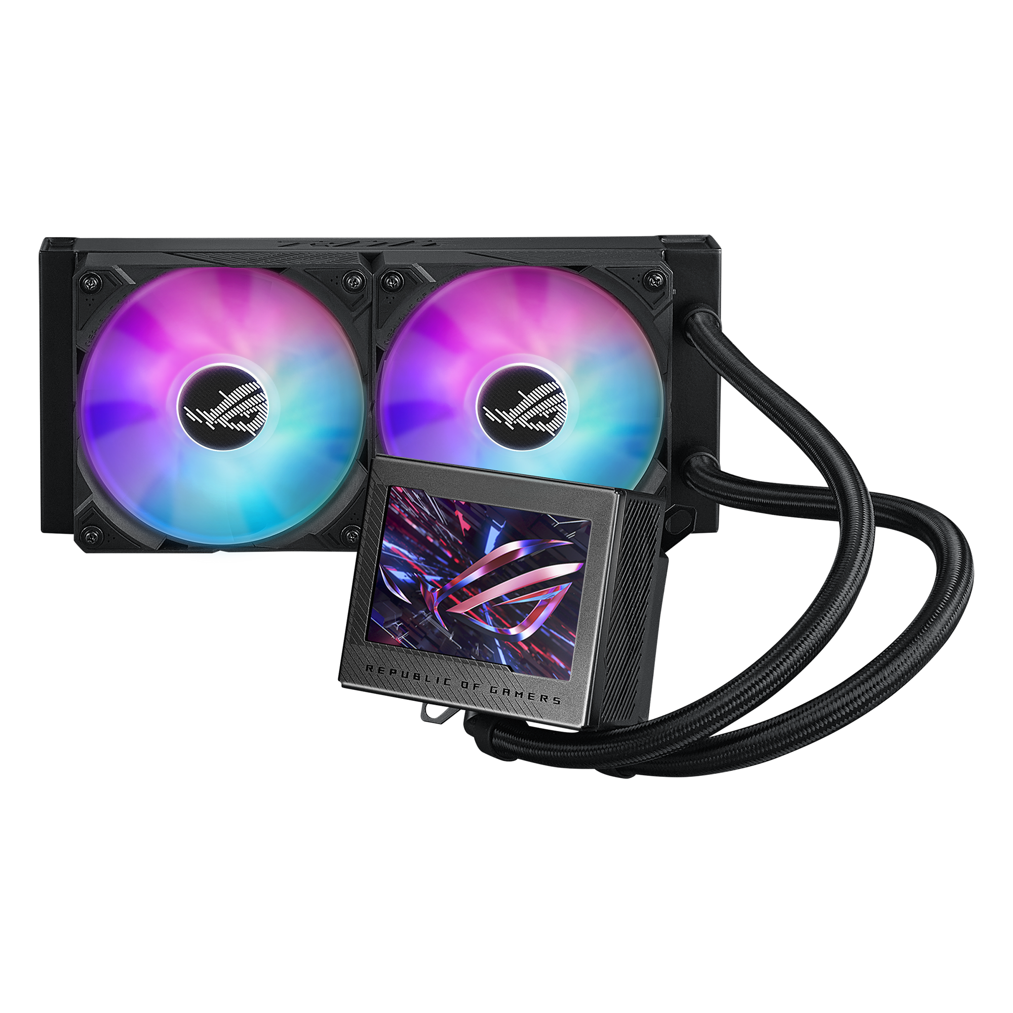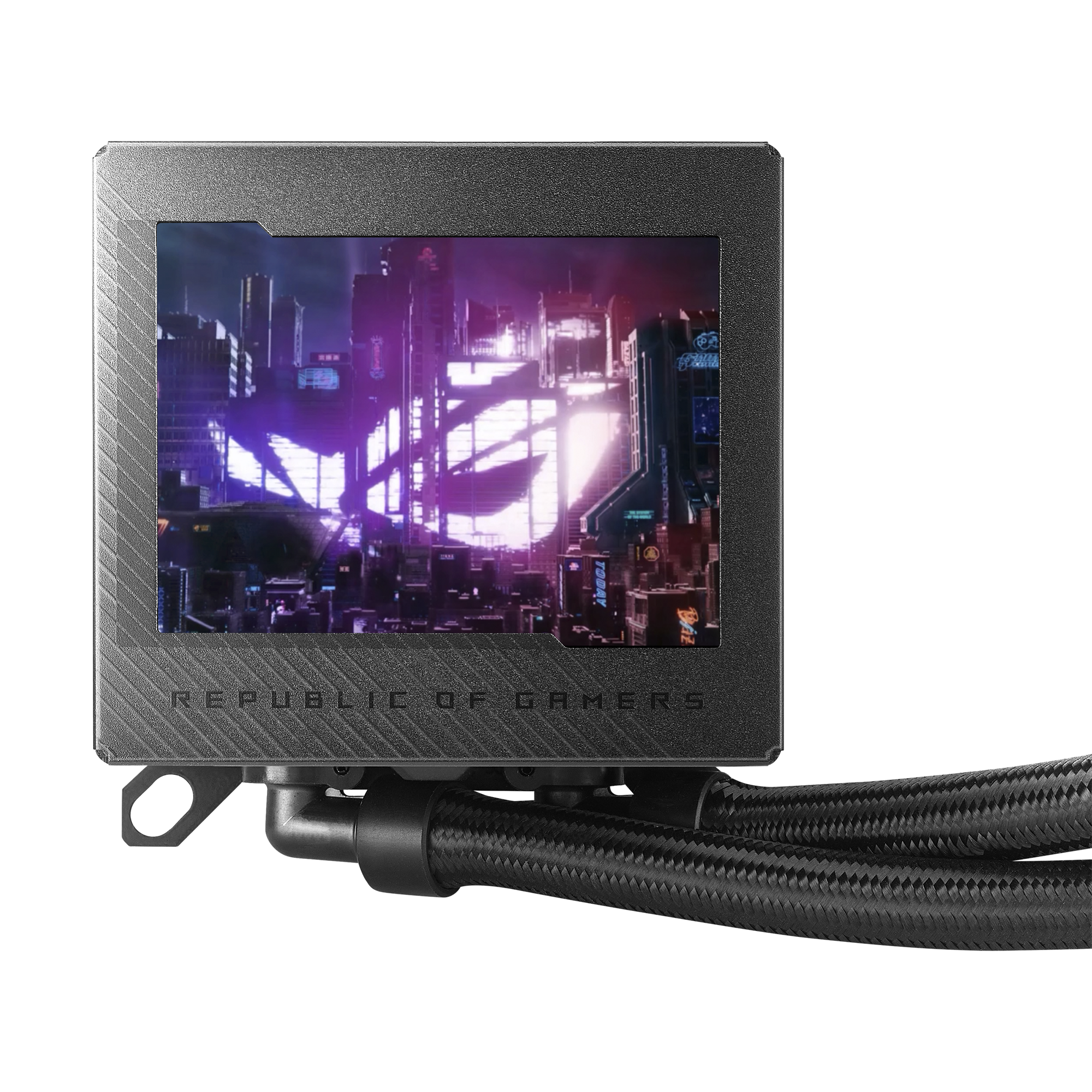 Go cooler than cool with the Ryujin III. An expansive 3.5-inch LCD sceen displays live system stats, animated GIFs, or even your own custom artwork. Underneath, a new 8th Gen Asetek pump quietly, paired with larger coolant tubes, keeps the latest processors from Intel and AMD cool, while an embedded Axial-tech fan helps control motherboard VRM temps. And the coolant within flows through a higher capacity radiator graced with two ROG 120 mm ARGB fans that utilize magnets to make installation a snap.