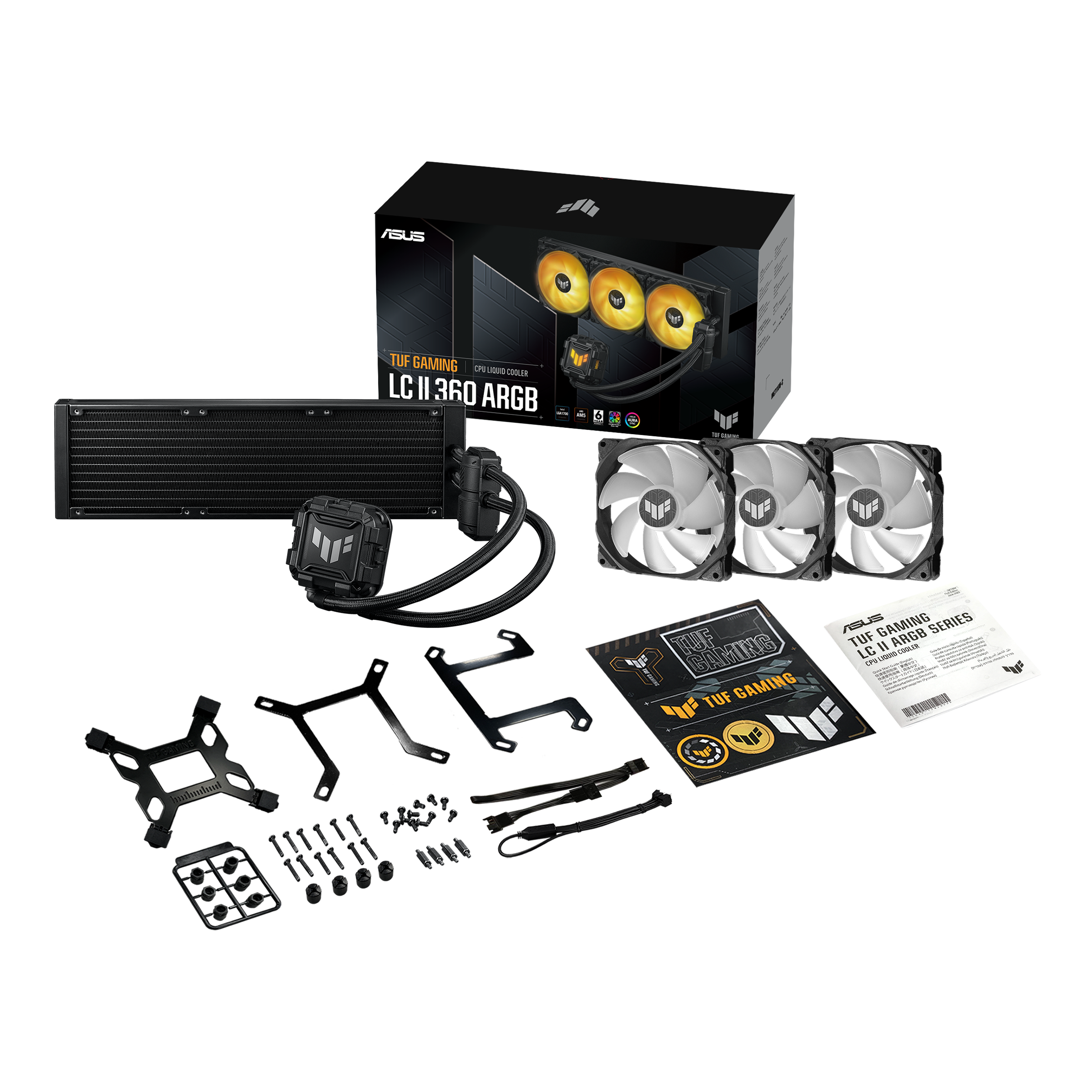 TUF Gaming LC II 360 ARGB all-in-one CPU liquid coolers with Aura Sync and three TUF Gaming 120mm ARGB radiator fans