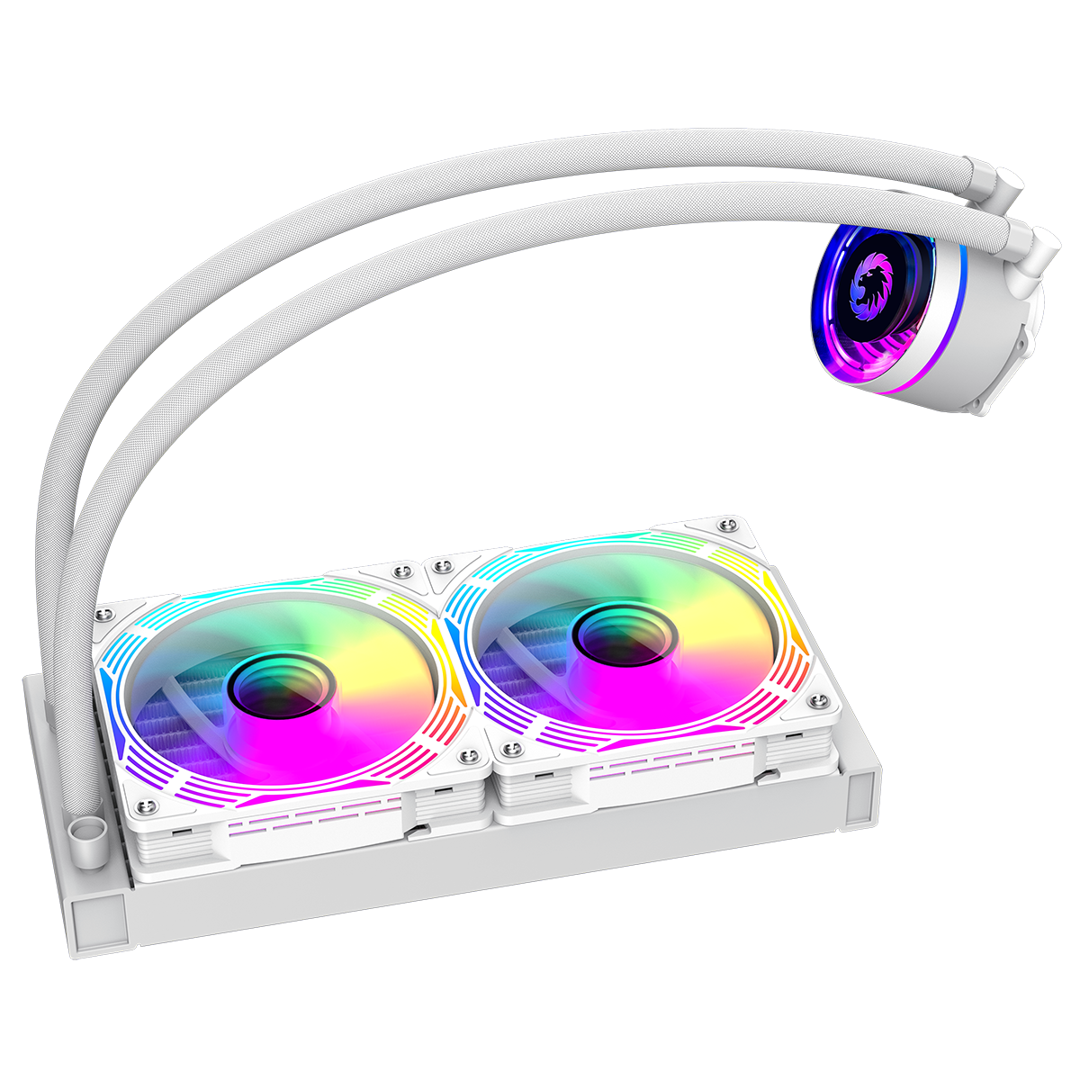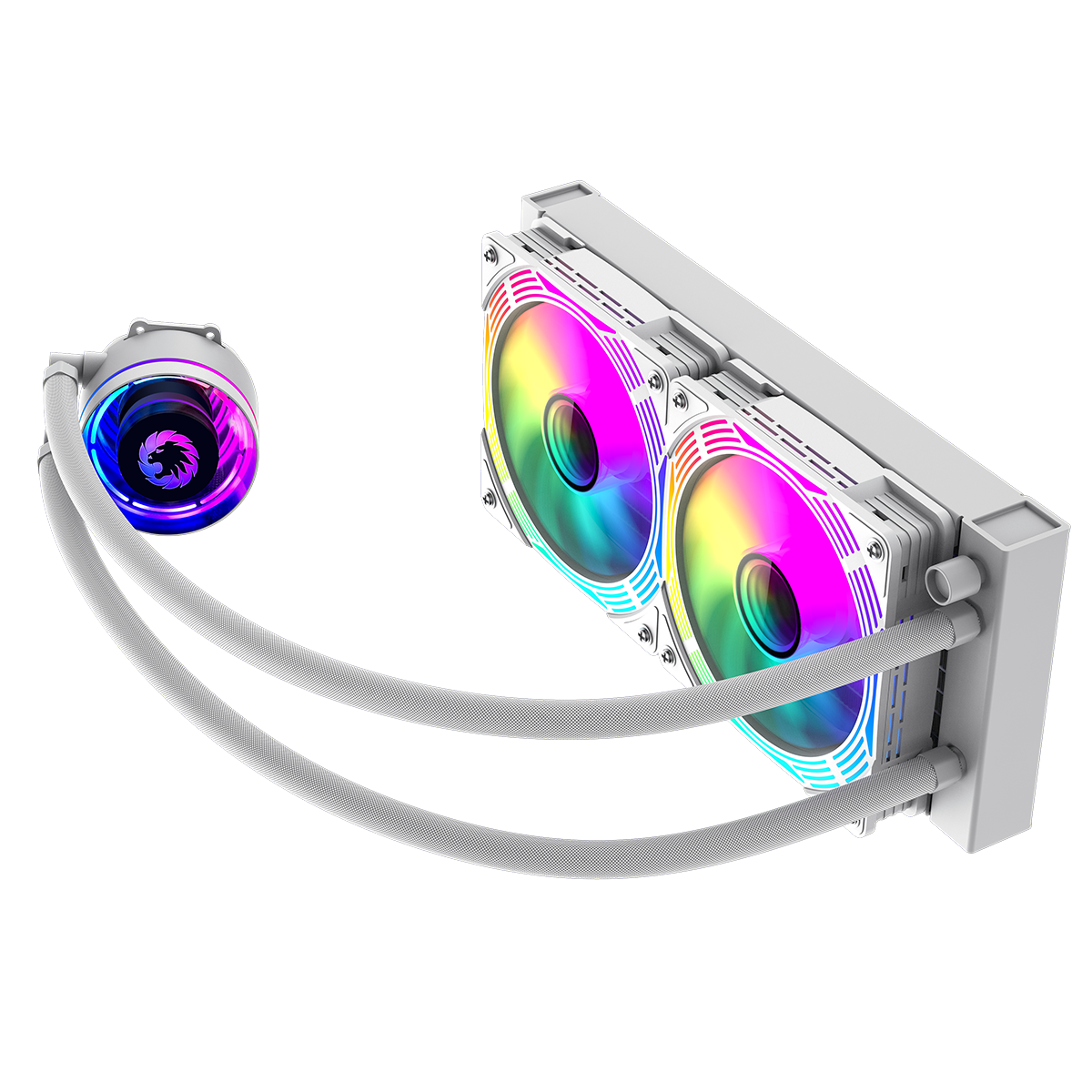 - Powerful AIO - The Ice Chill 240V is a Dual Fan Radiator made of aluminium and copper, equipped with two 120mm ARGB Infinity fans and the fans are controlled by PWM in a range between 800 and 2000 RPM. At its maximum rotation speed the fan generates a static pressure of 1.89 mmH2O and the air throughout is 62.82CFM. Efficient cooling up to 250W TDP is guaranteed so that powerful processors are effectively cooled, water tubes measure 400mm length to ensure the flexibility during assembling in PC case.