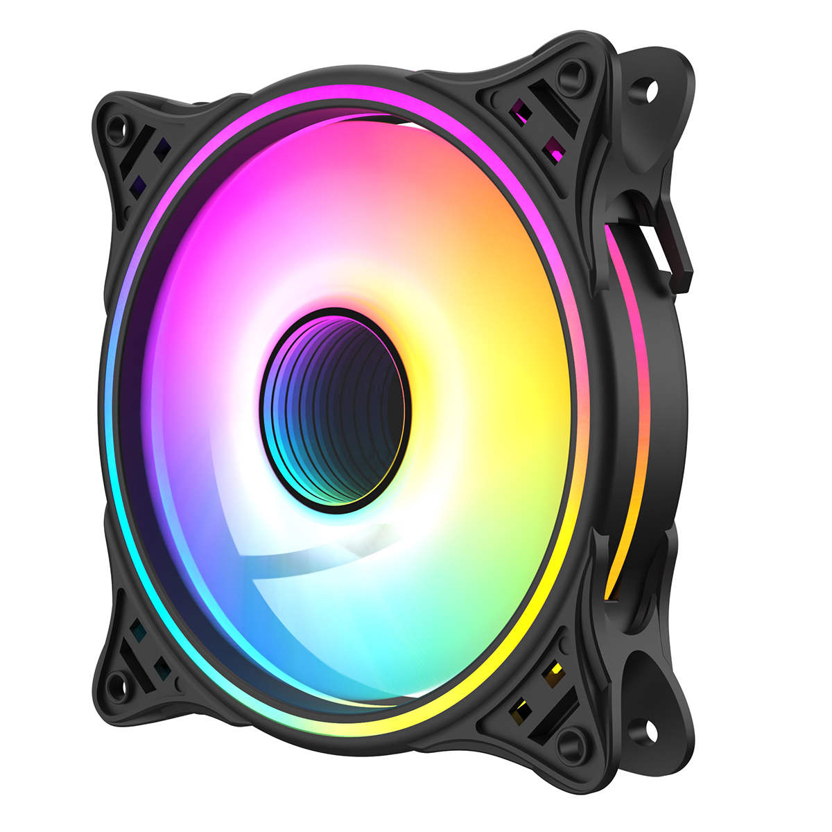 This stylish dual-ring fan is available in black or white and with a speed ranging from 500-1500 RPM and airflow of 48.7 CFM. Daisy-chain multiple units via the ARGB fans male and female Aura connectors. As a PWM fan (Pulse-Width Modulation) it’s rotation speed can be user controlled by connecting the fan to a compatible motherboard or a compatible controller. As a result, users can choose whether they want the fan to run quietly or have enhanced airflow.