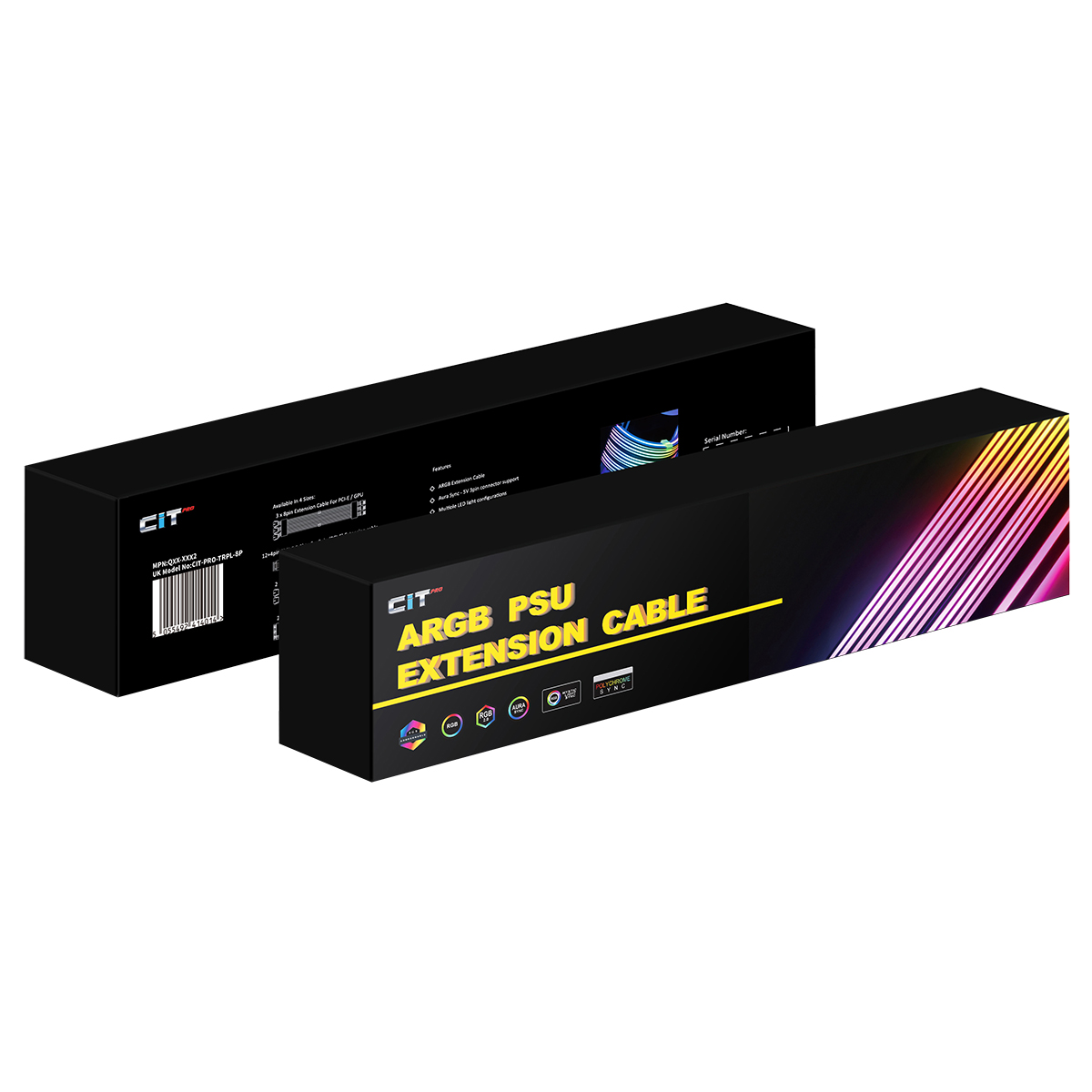 Take your chassis aesthetic to the next level with the CiT Pro 8-Pin ARGB GPU cable. CiT have a created a high-end quality extension cable, over 200mm in length this flexible cable is made with three 8-Pin headers for connecting to your Graphics Card. Stunning colours this cable is an impressive addition to your gaming PC.